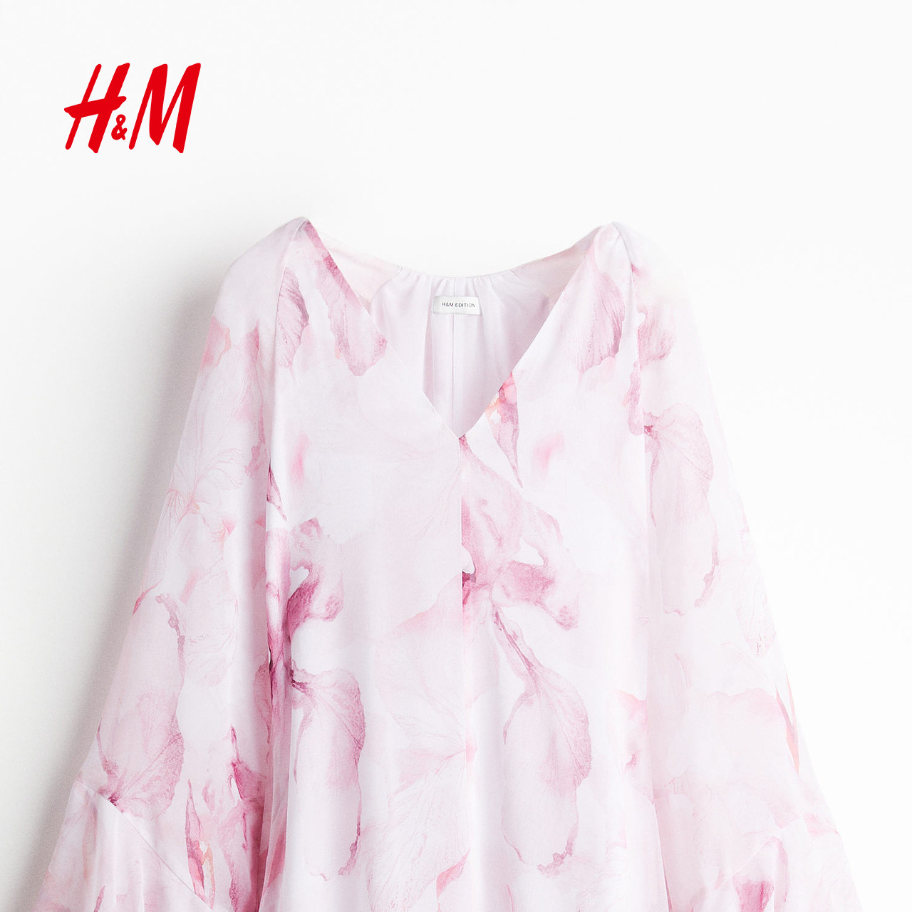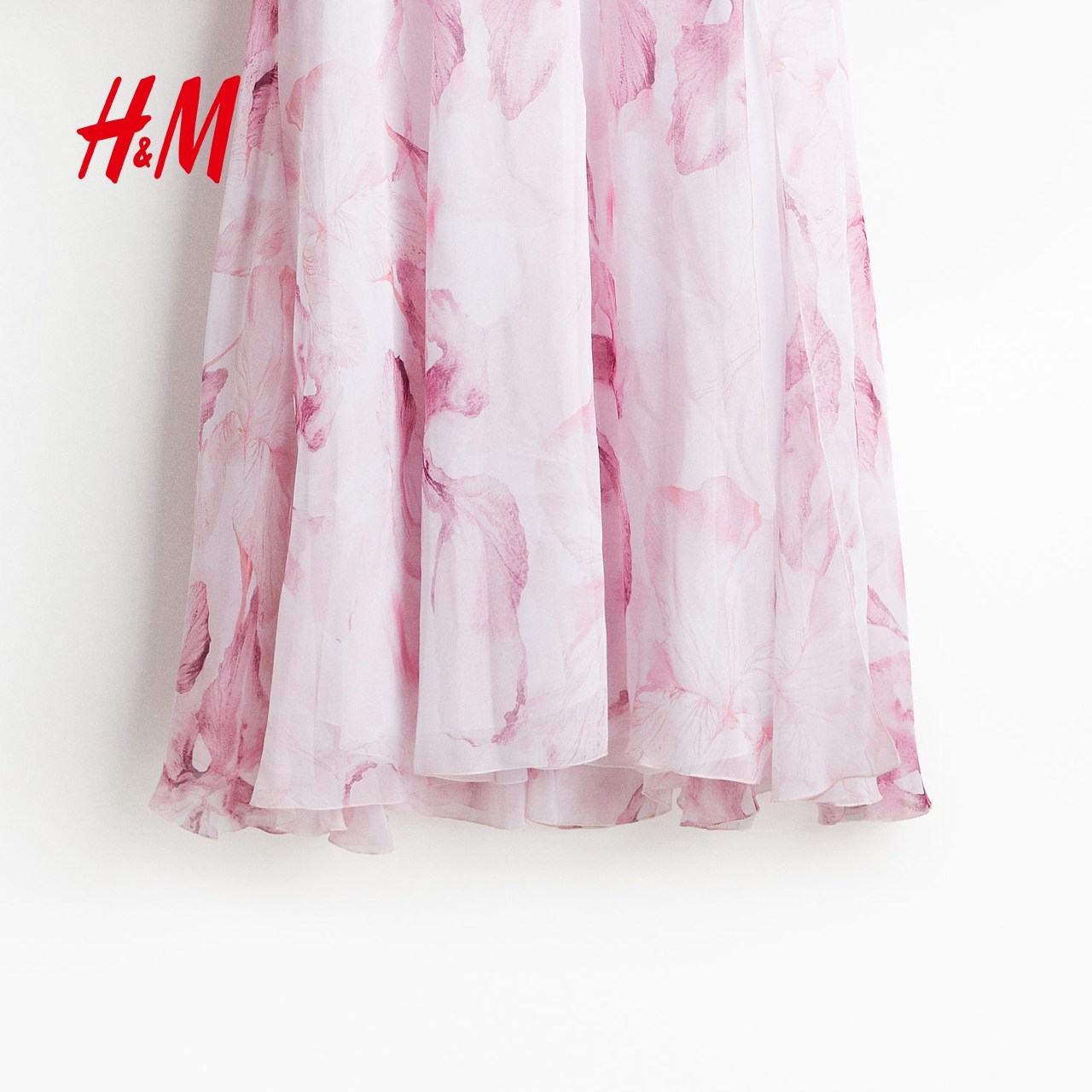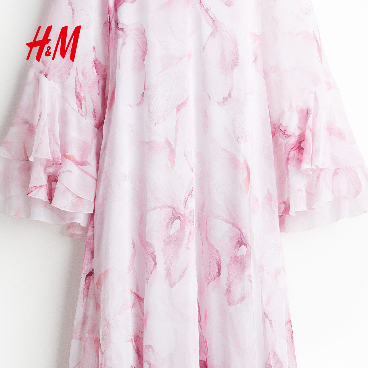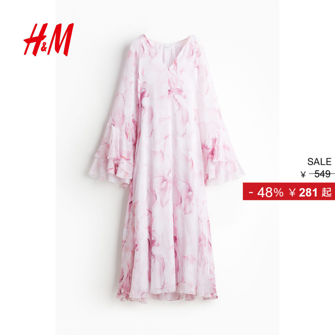 【致臻系列】HM女装花卉连衣裙冬季长袖优雅气质雪纺长裙1231199