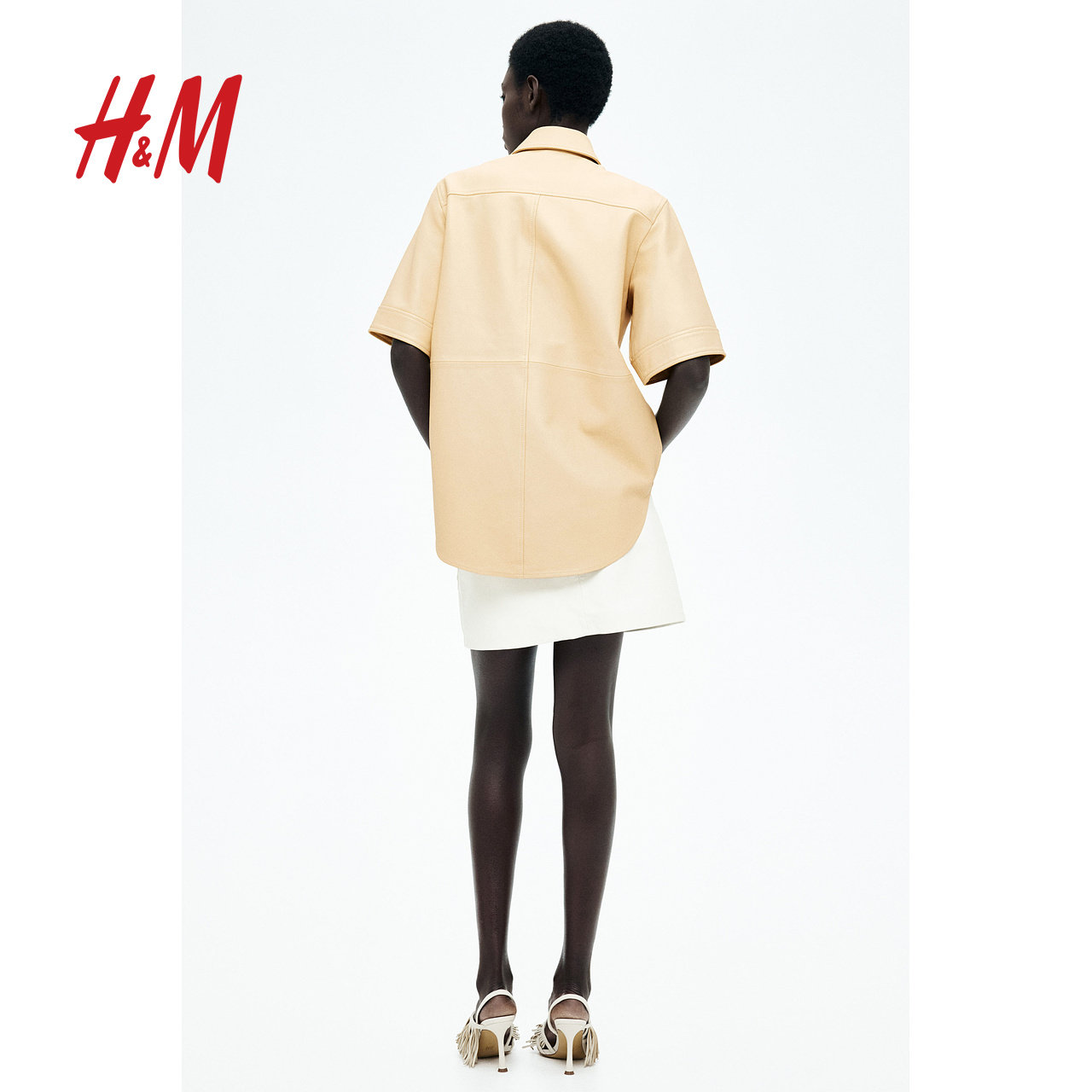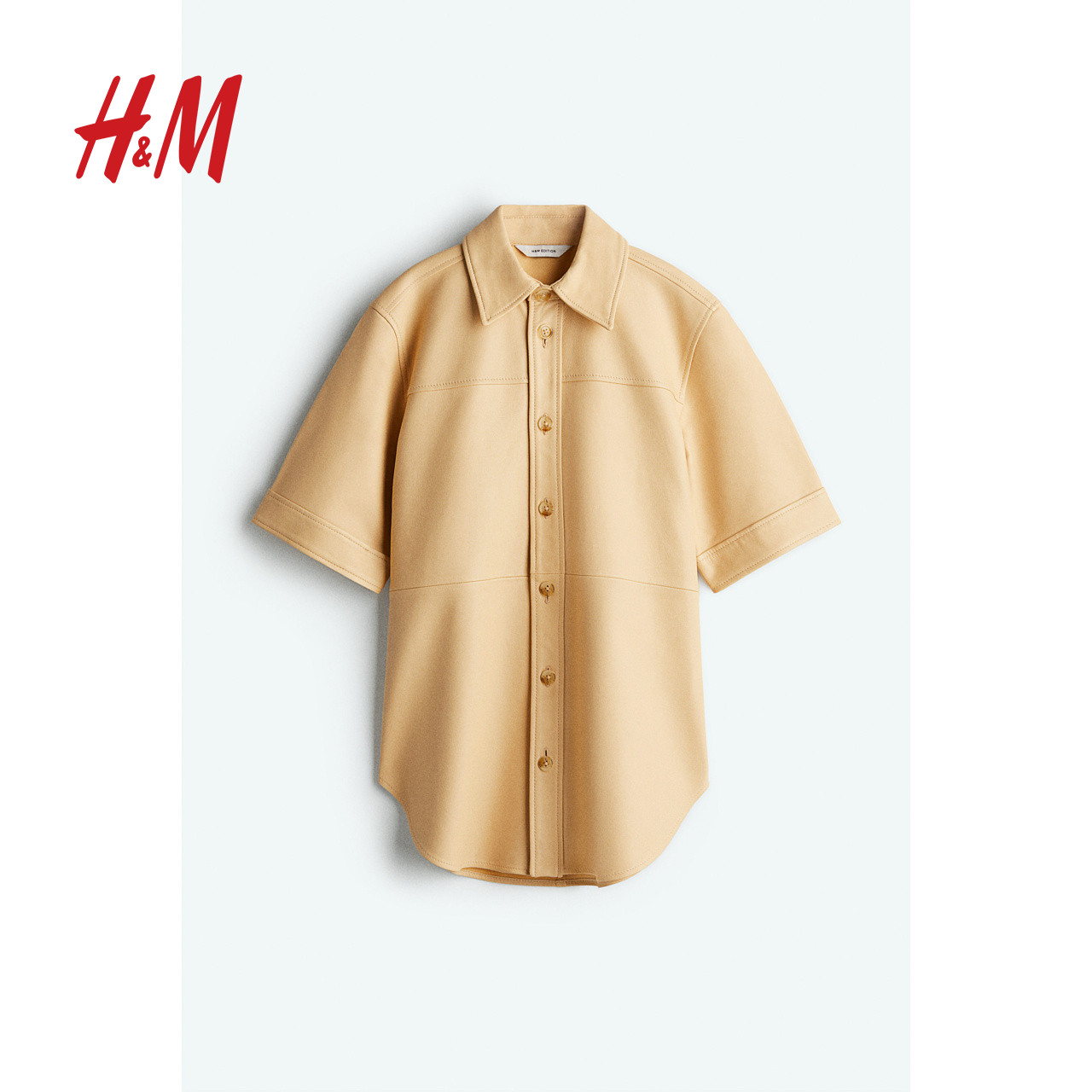 HM S/S女装皮衣春季新款柔软简约宽松皮革短袖衬衫1282647