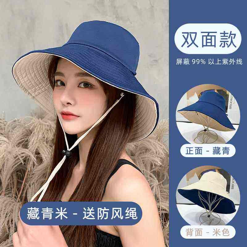 渔夫帽防晒帽女夏天大帽檐遮脸太阳帽子抗遮阳帽春夏款防风骑车