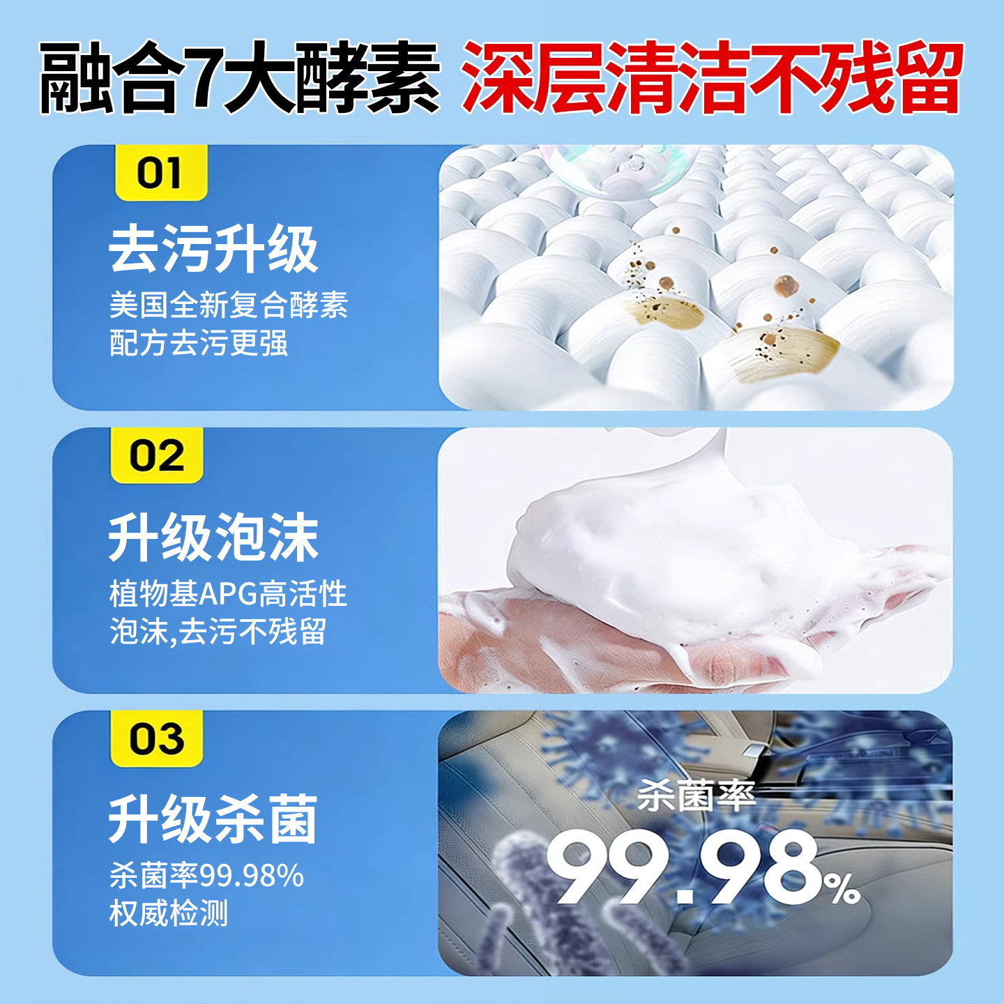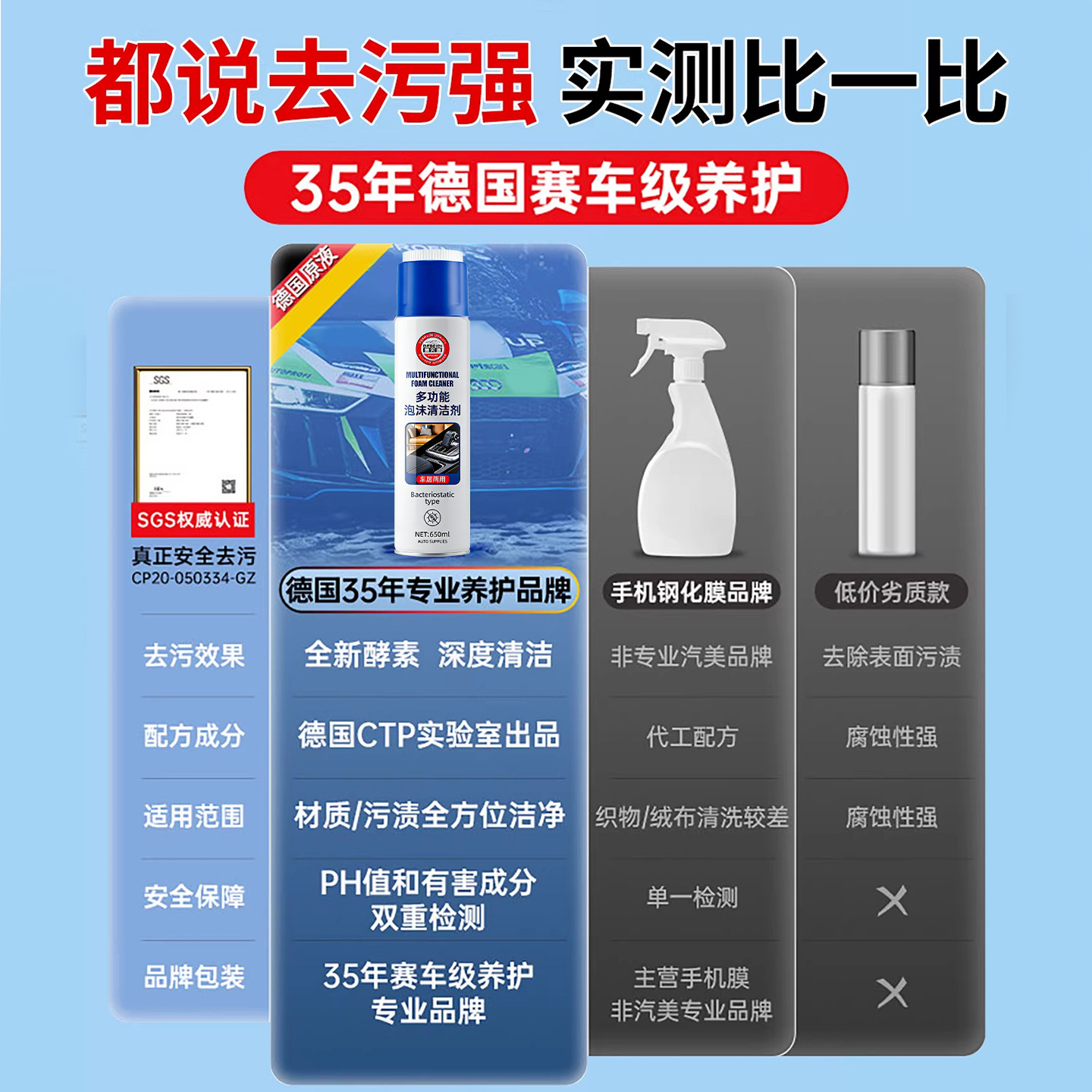 德国汽车内饰清洗剂免水洗真皮革座椅泡沫去污顶棚车内清洁神器