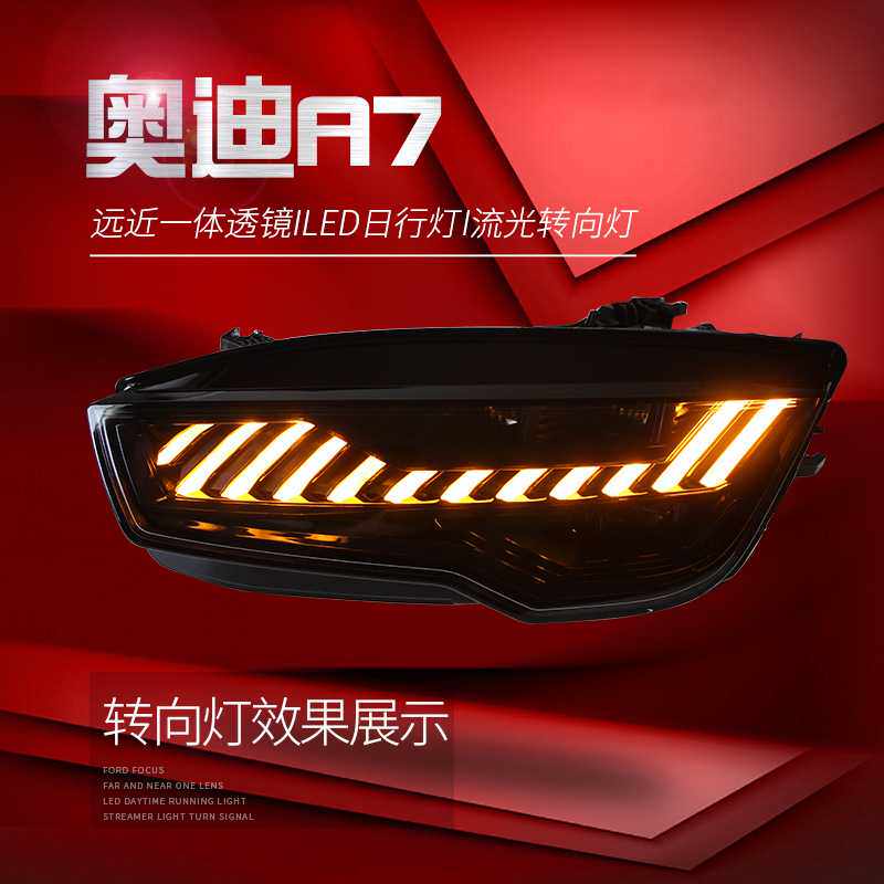 适用于11-18款奥迪A7大灯总成S7改装LED透镜大灯日行灯流水转向灯
