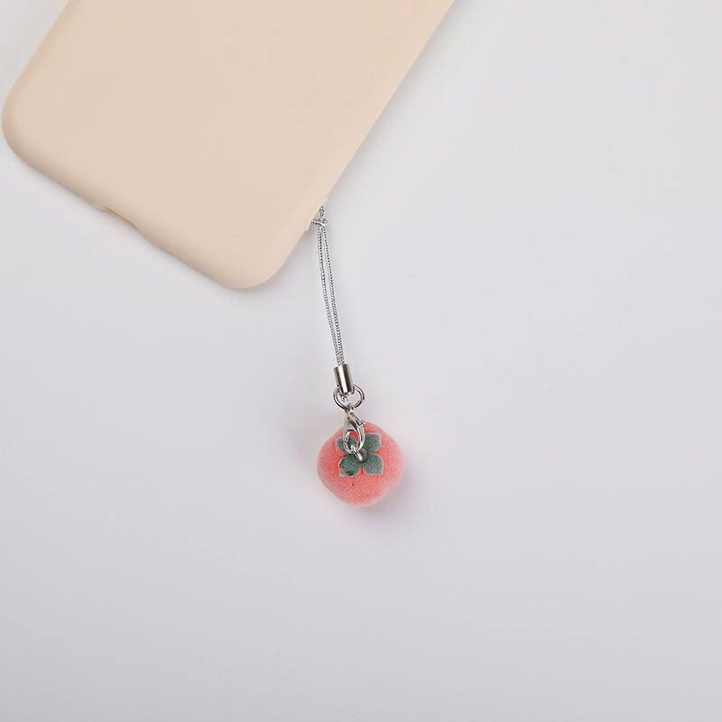 植绒粉柿子可爱学生个性手机挂件挂绳手机链吊坠女书包包小挂饰品