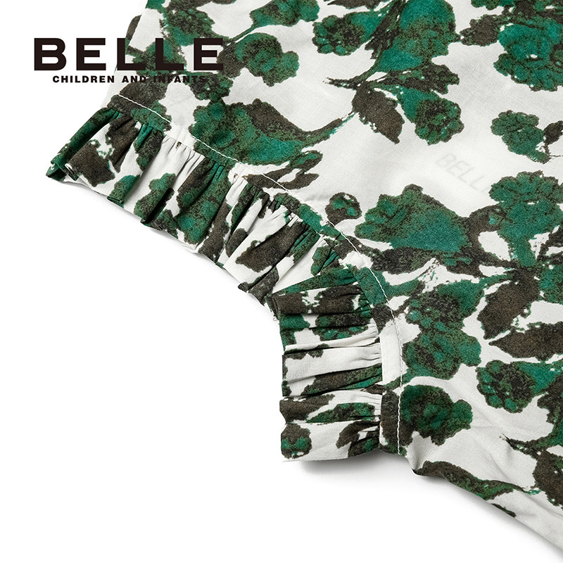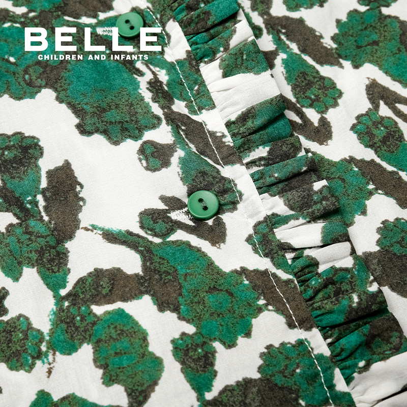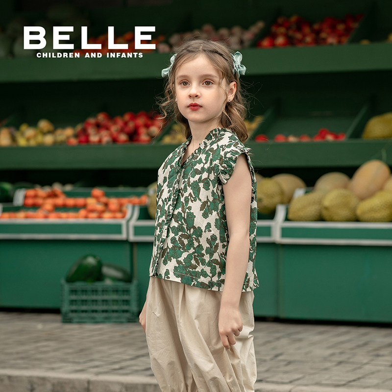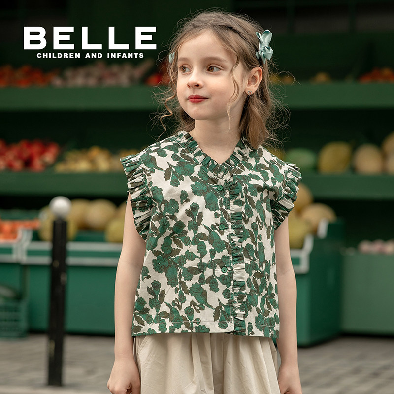 百丽童装女童印花衬衫夏季新款小女孩无袖衬衣气质优雅V领上衣潮