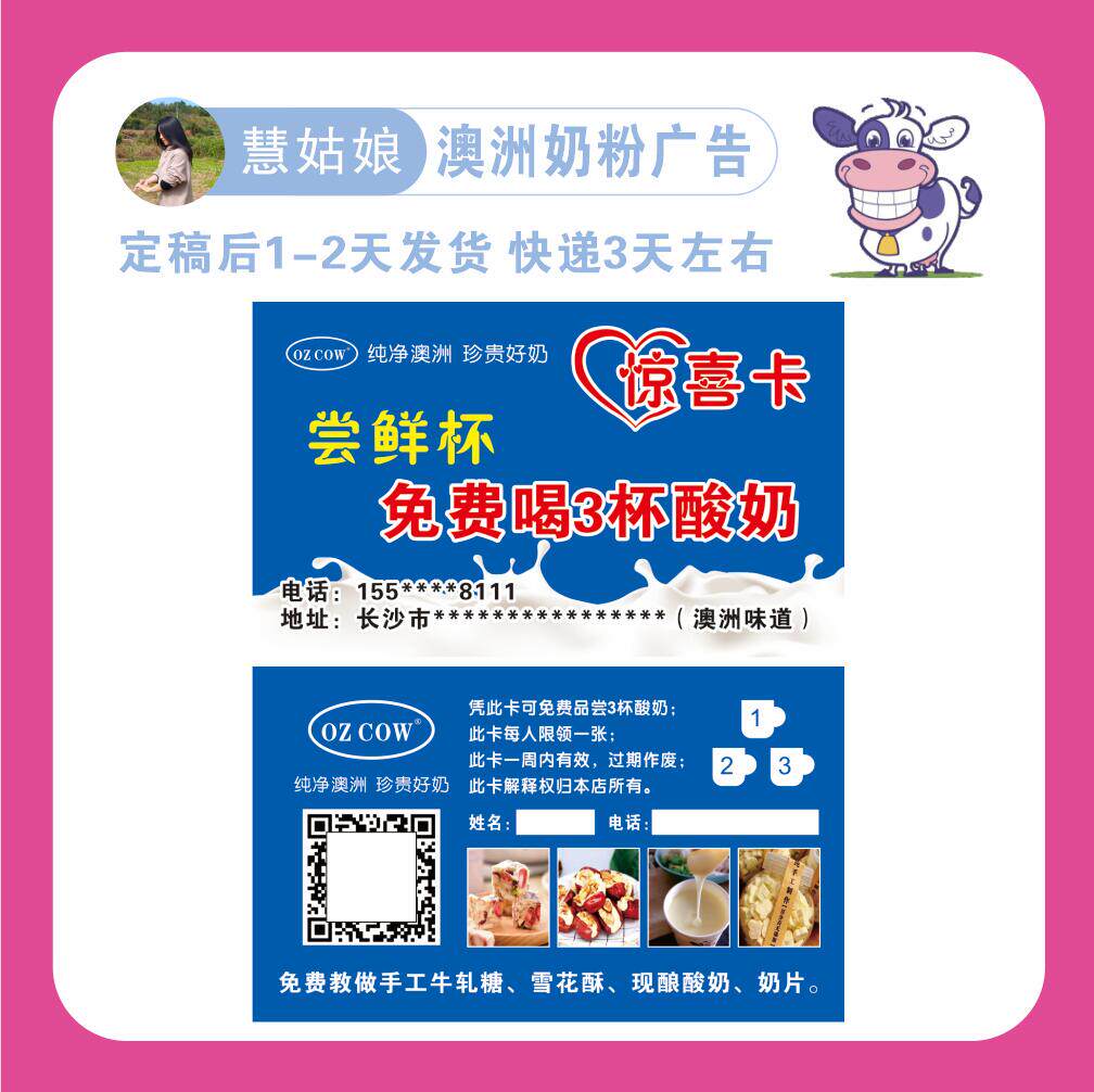 【澳洲奶粉免费引流小酸奶卡】惊喜福利美食代金券牛奶粉名片地推