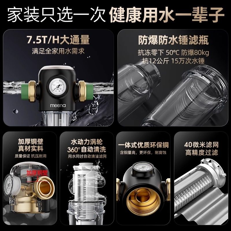 前置过滤器自来水自动反冲洗家用净水器机全屋全铜防爆入户滤水器
