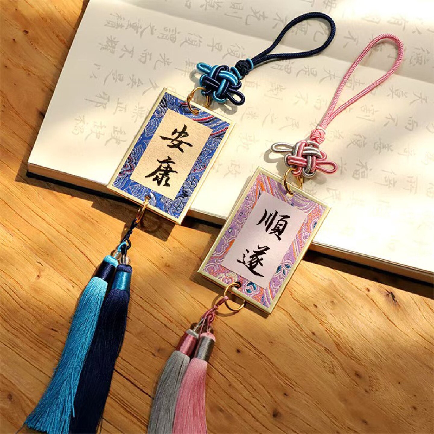 双面硬卡挂件手写加厚宋锦硬卡迷你挂卡书签挂件吊穗汽车挂件diy