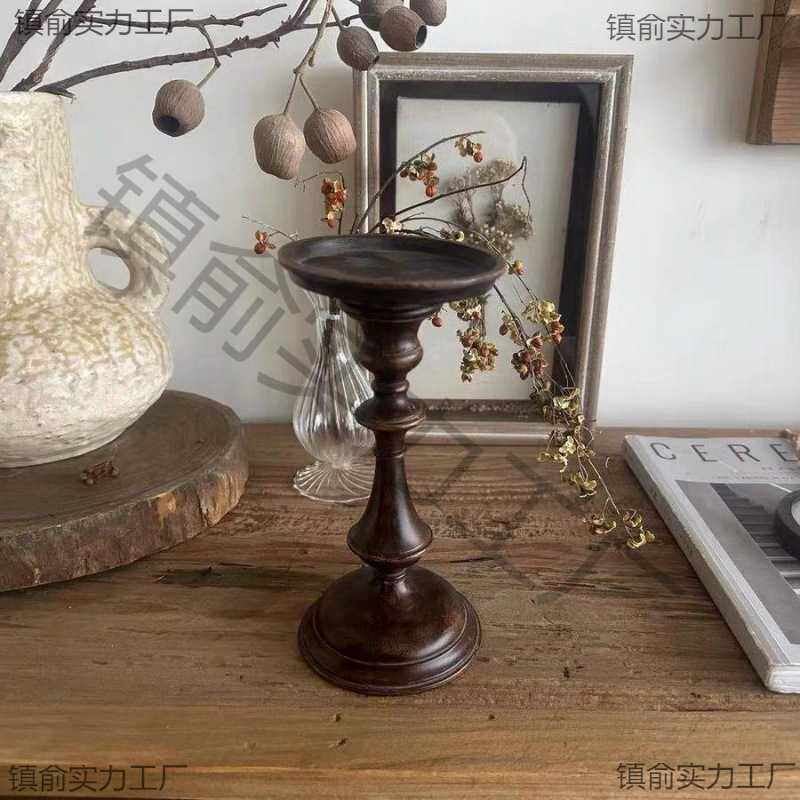 中古高脚烛台欧式装饰复古道具树脂摆件仿古餐桌--台古风高颜值
