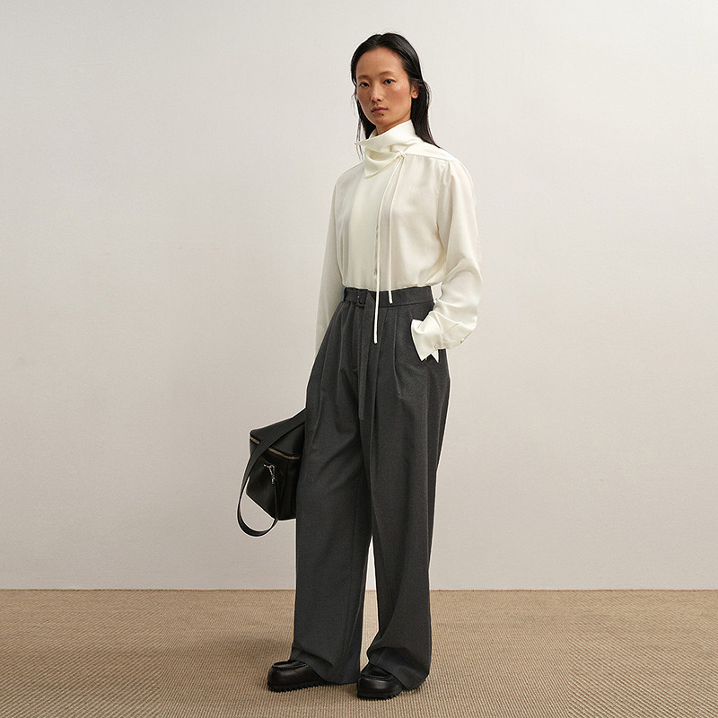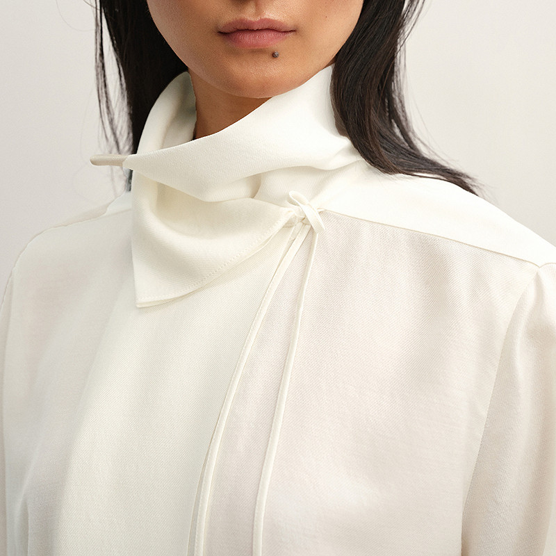 【商场同款】LESS2025秋新优雅拼接立领系带设计感衬衫2P9217740