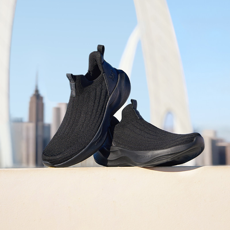 361男鞋黑色运动鞋春季新款网面透气一脚蹬懒人鞋软底回弹跑鞋男