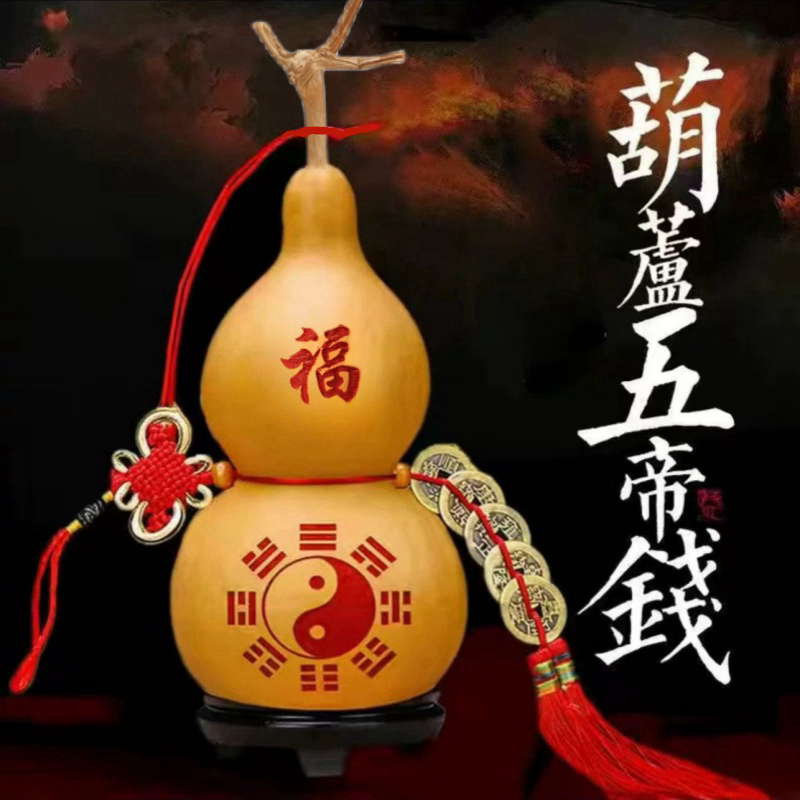 开口葫芦摆件八卦图招财五帝钱天然对门卧室吉祥桌面办公室厨房