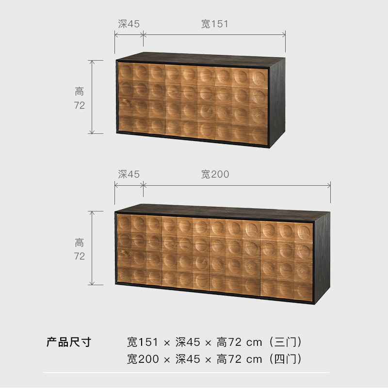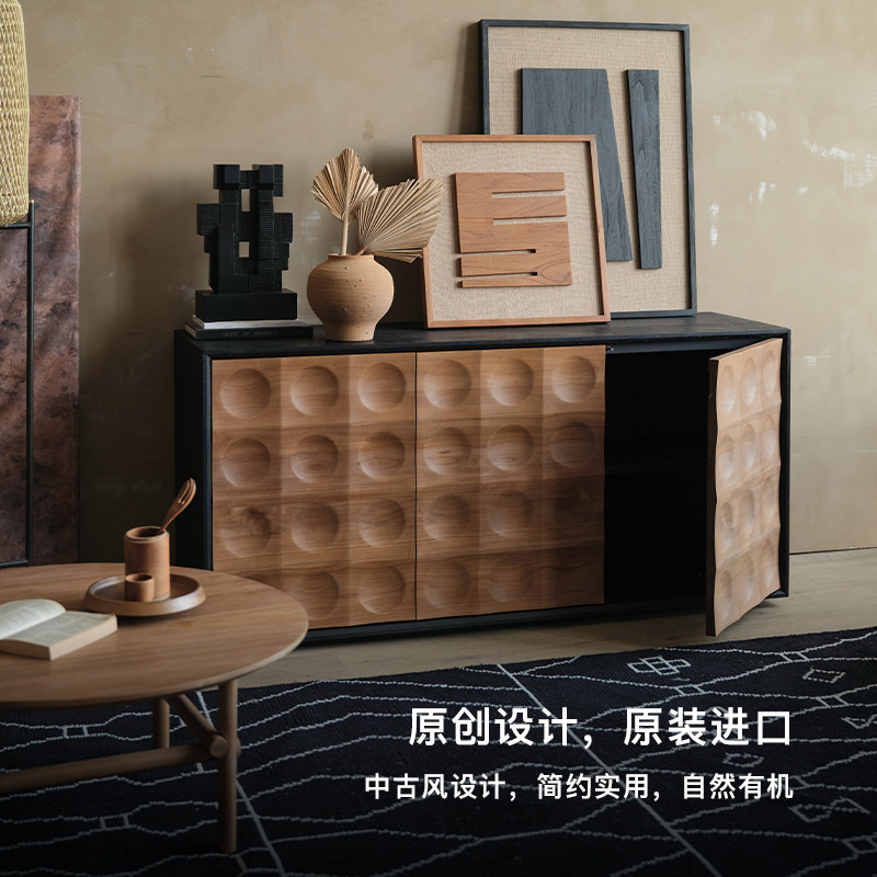 Mountain Living进口柚木家具实木餐边柜靠墙一体储物柜成品半高