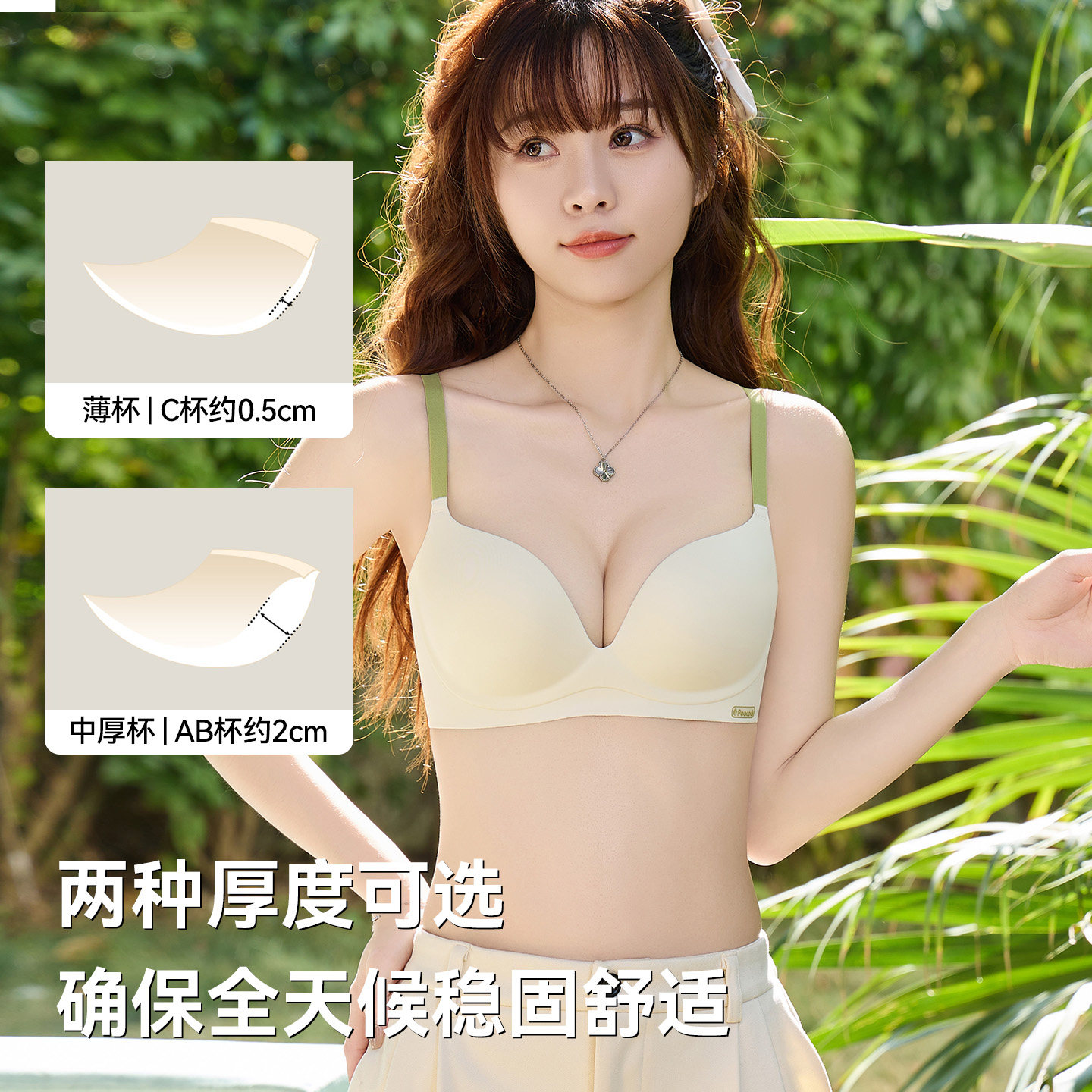 草本初色内衣女细肩带无痕夏季薄款大胸显小胸聚拢凉感无钢圈文胸