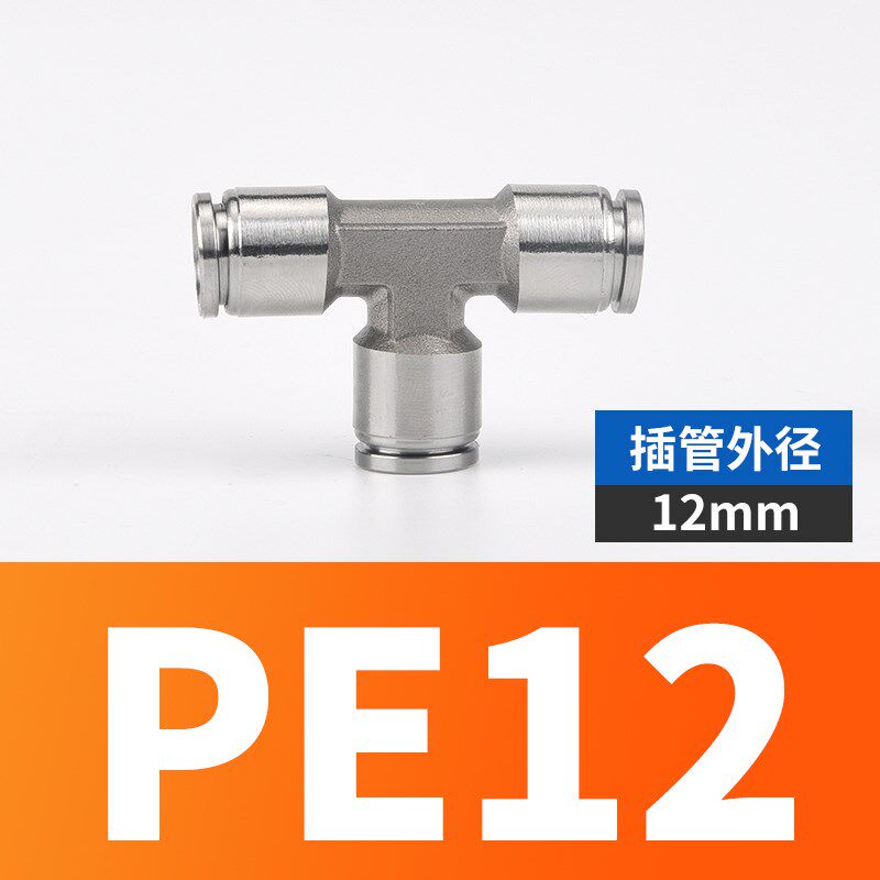 304不锈钢气管快速接头快插气动快接高压气嘴T型三通对接元件PE-8