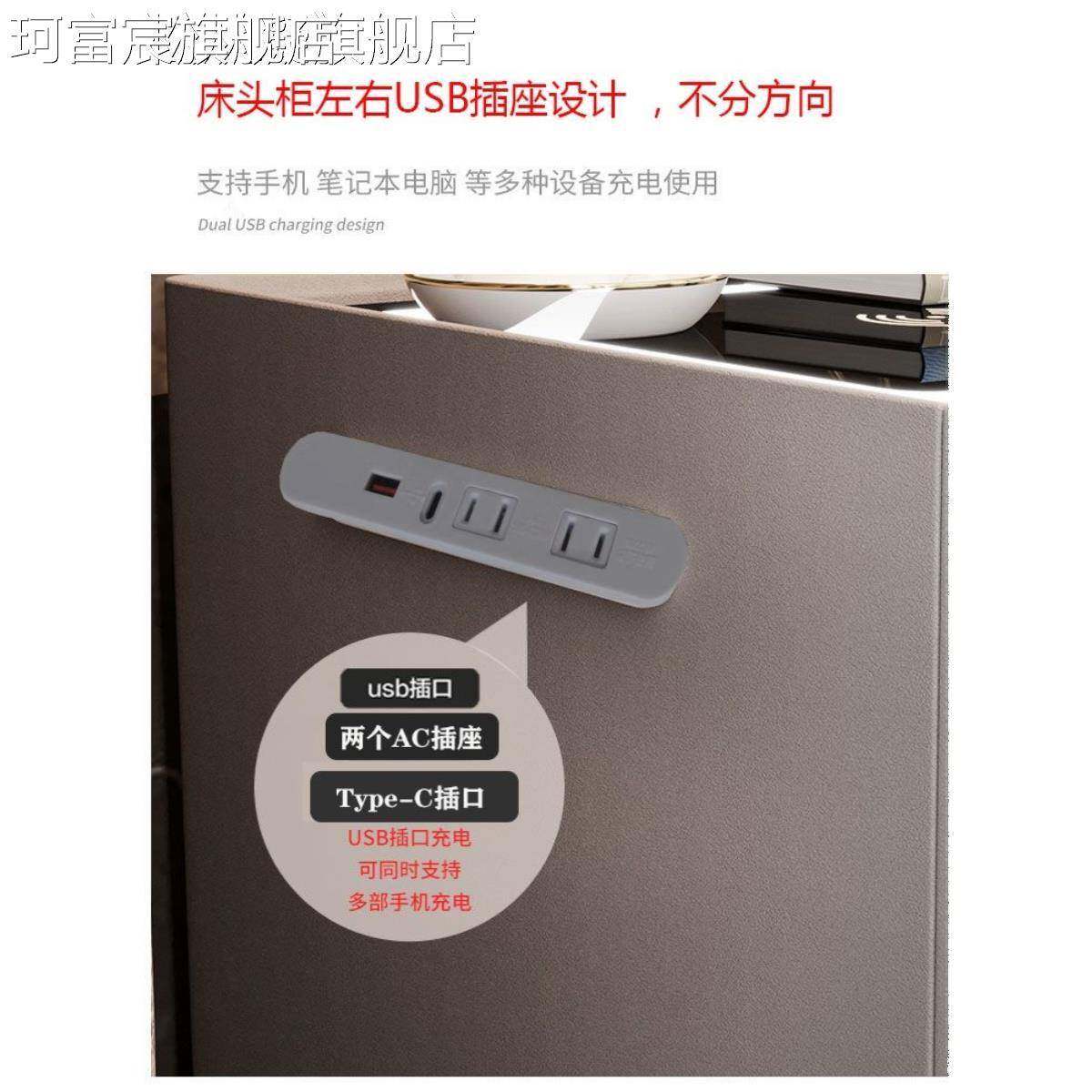 珂富宸智能床头 柜实木皮质蓝牙音响多功能出租房家用保险 箱一体防盗轻奢摆件饰品摆件饰品床笠拉车盖布