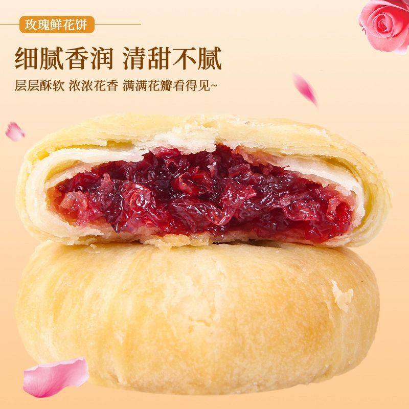 鲜花饼正宗玫瑰饼糕点心早餐零食小吃食品休闲玫瑰花现烤传统抹茶