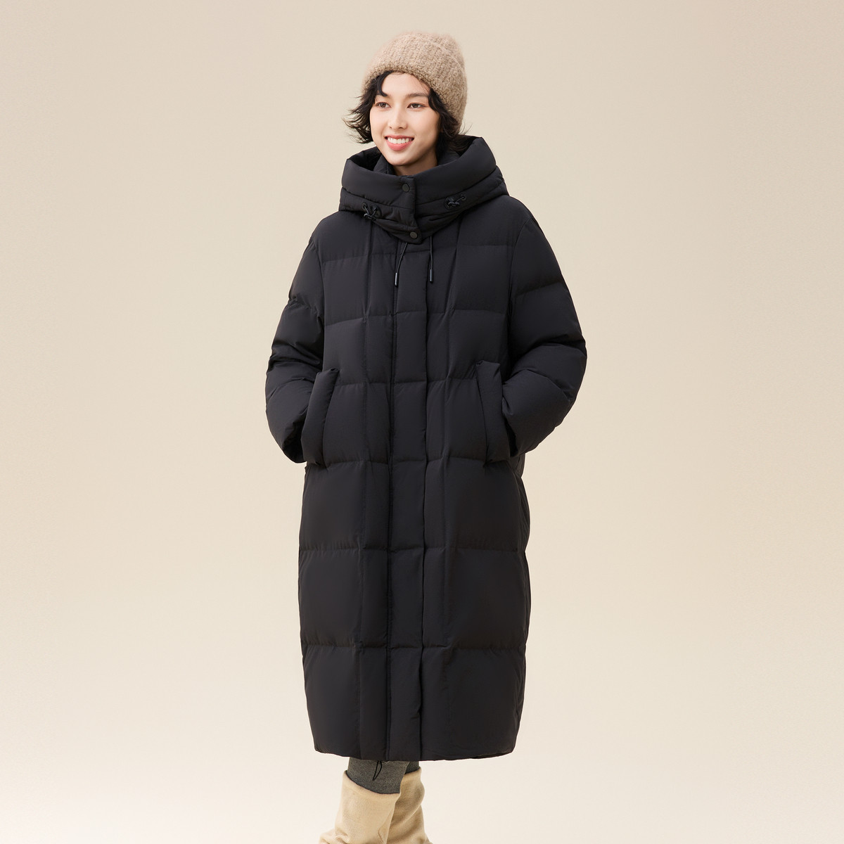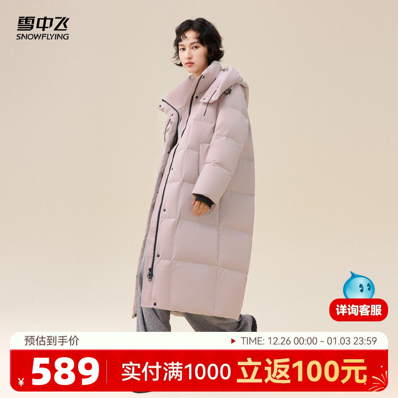 雪中飞2025冬新款女士长款连帽羽绒服加厚粉色可爱温柔舒适大被子