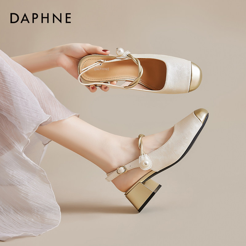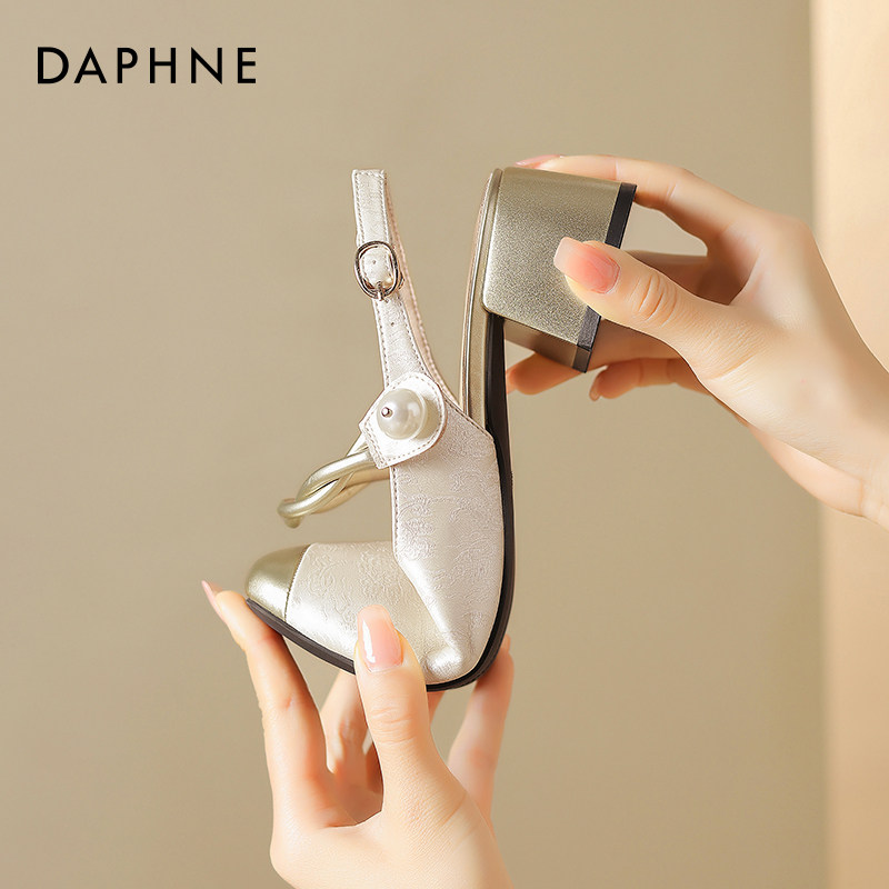 达芙妮包头凉鞋女2026新款夏季国风一字带高跟鞋新中式单鞋配裙子