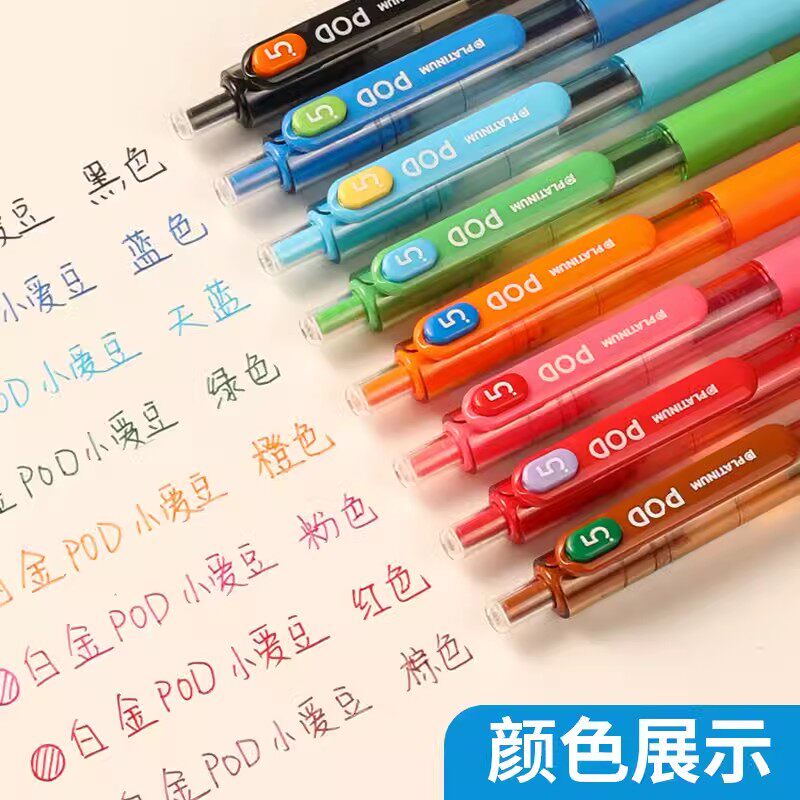 PLATINUM白金牌小爱豆限定款中性笔POD5学生用0.5考试黑笔针管头按动水笔洋风奶茶花草店猫头鹰芭比签字笔