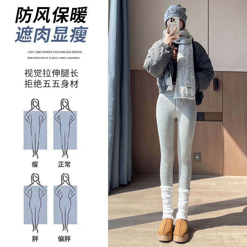 【超值特惠】小野和子连裤袜女秋冬外穿灰色加绒打底裤显瘦袜子TK
