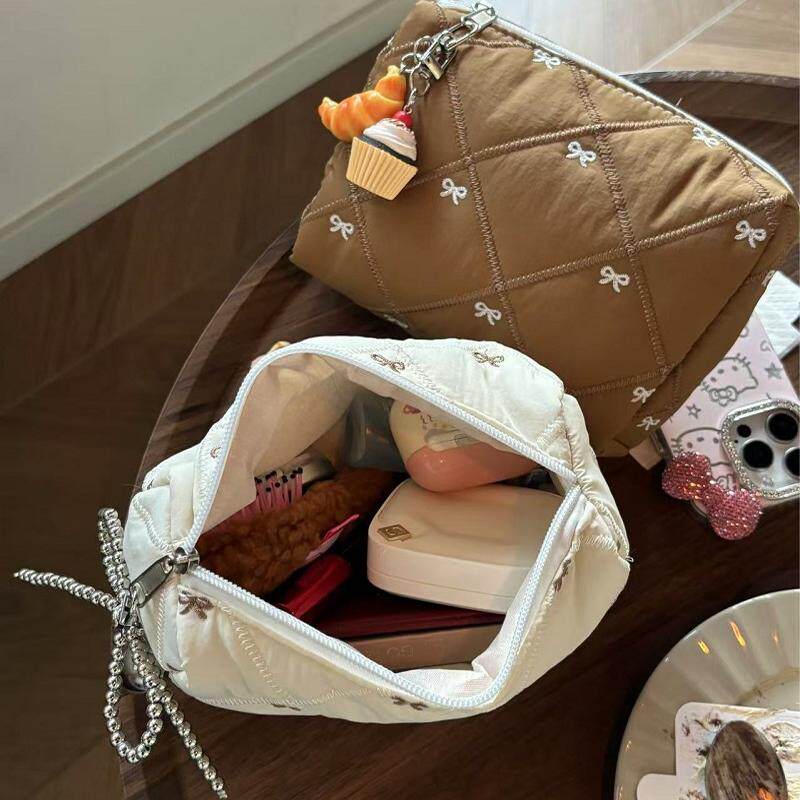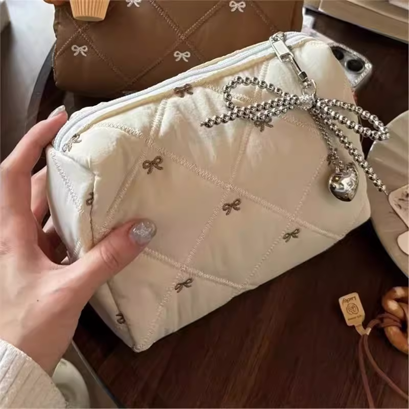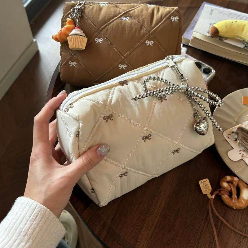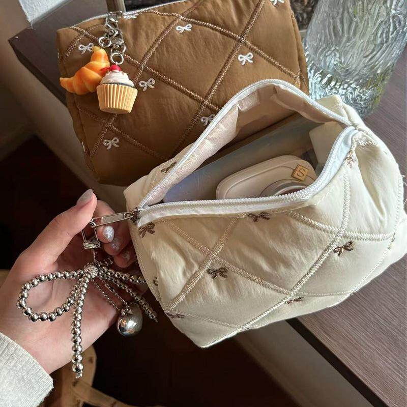 秋冬新款加棉加厚蝴蝶结刺绣大容量化妆包便携收纳洗漱包可爱包包
