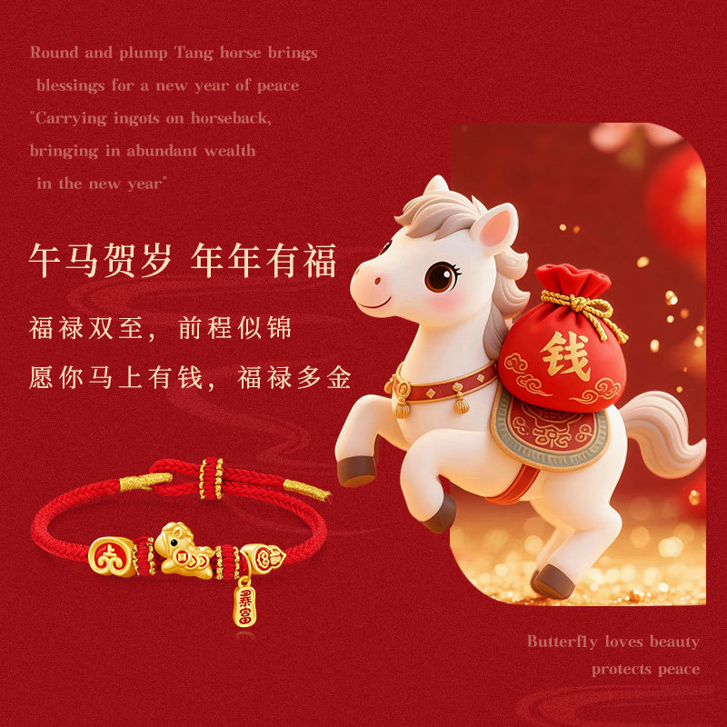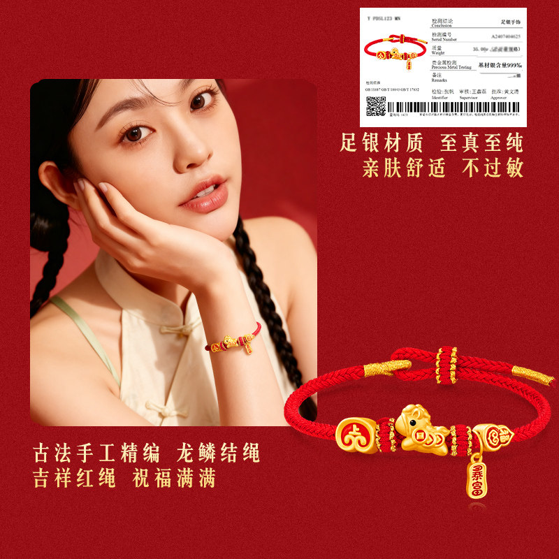 【马年暴富】中国黄金珍尚银手链999足银本命年红手绳女生日礼物