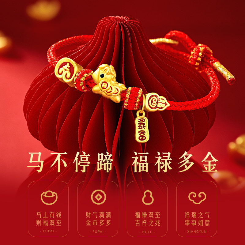 【马年暴富】中国黄金本命年红手绳手链女生