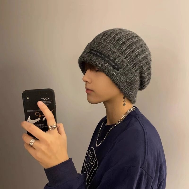 帽子男士秋冬潮毛线帽男款保暖百搭冷帽宽松大头围显脸小针织帽男