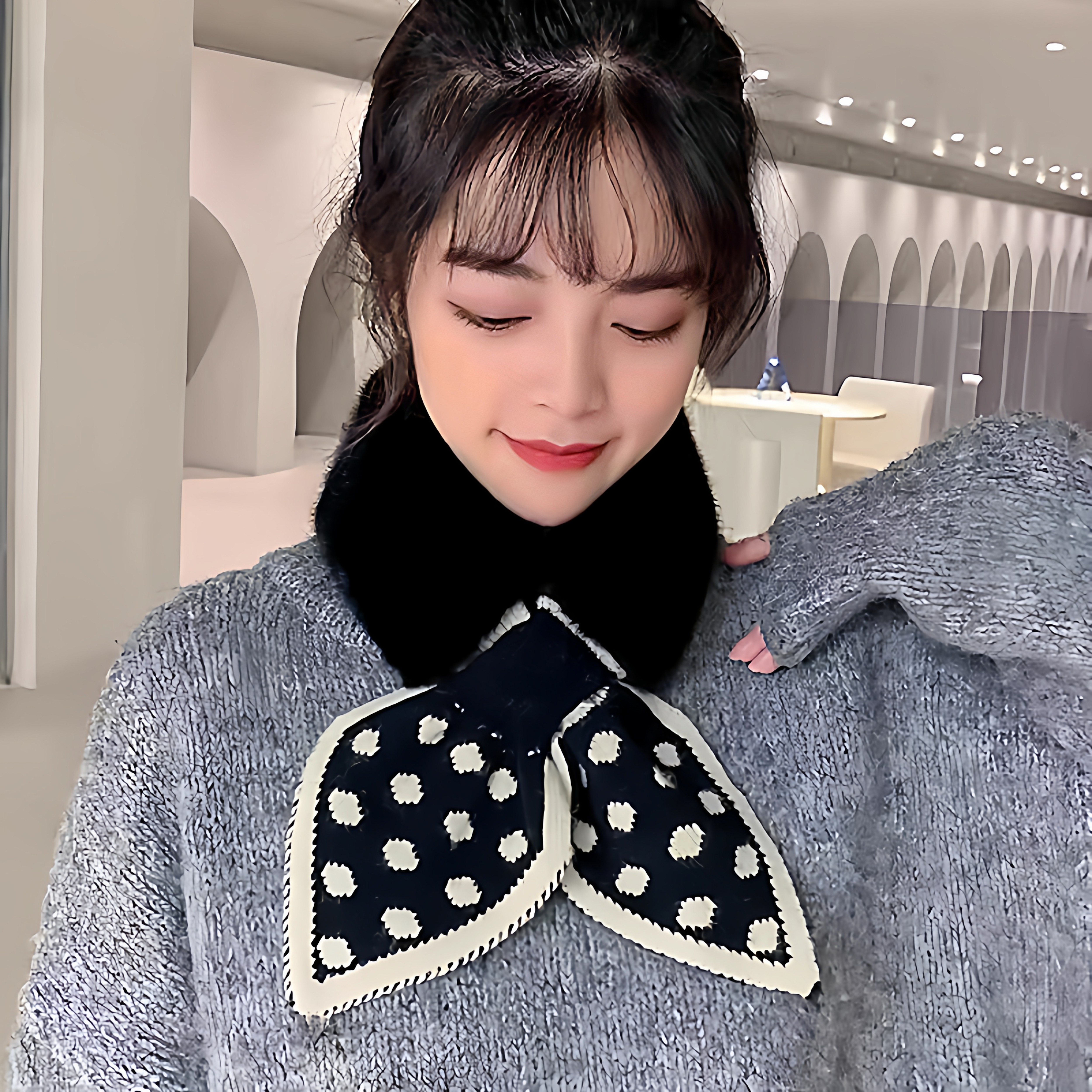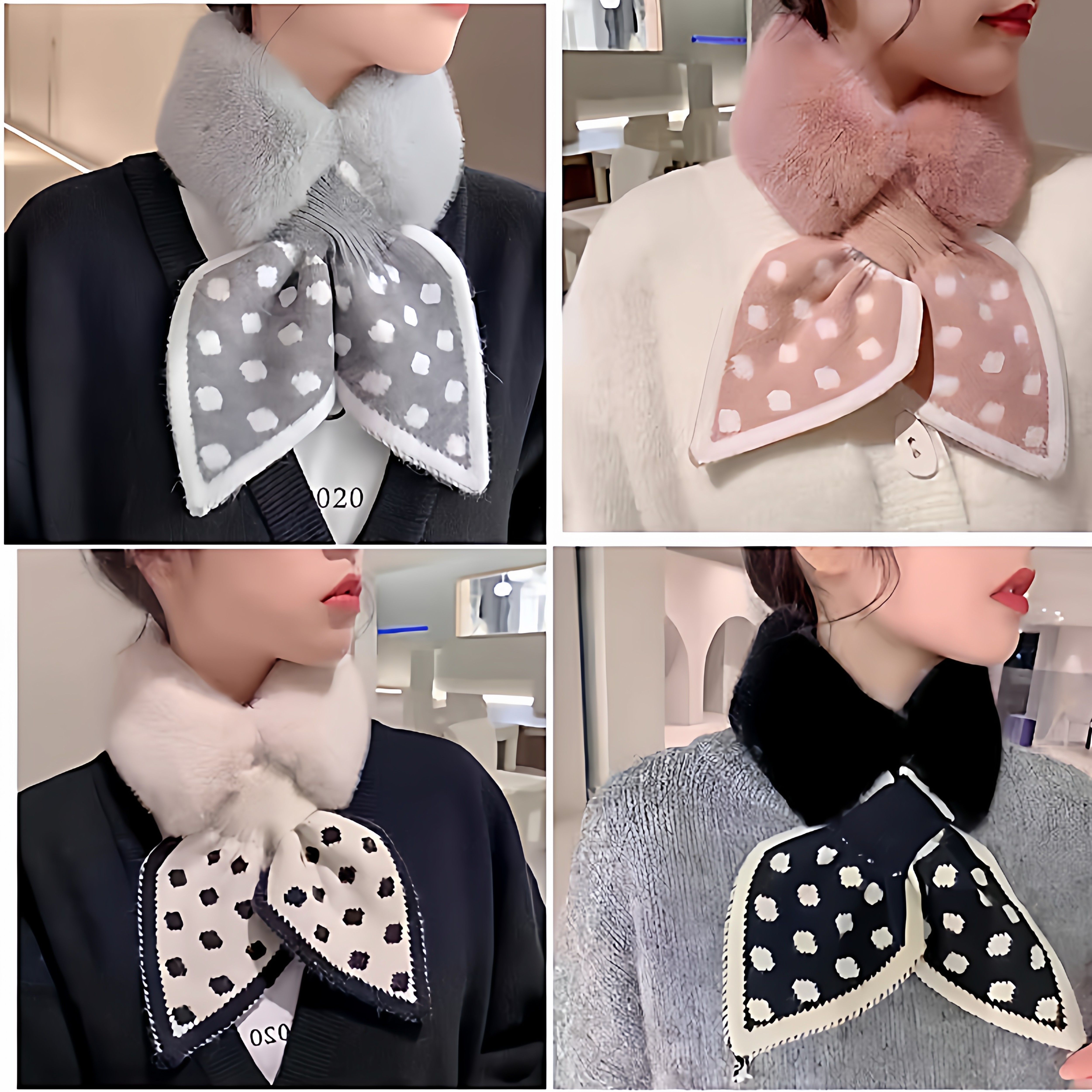 毛绒围巾女款2025新款冬韩系氛围感可爱百搭保暖交叉毛领围脖护颈