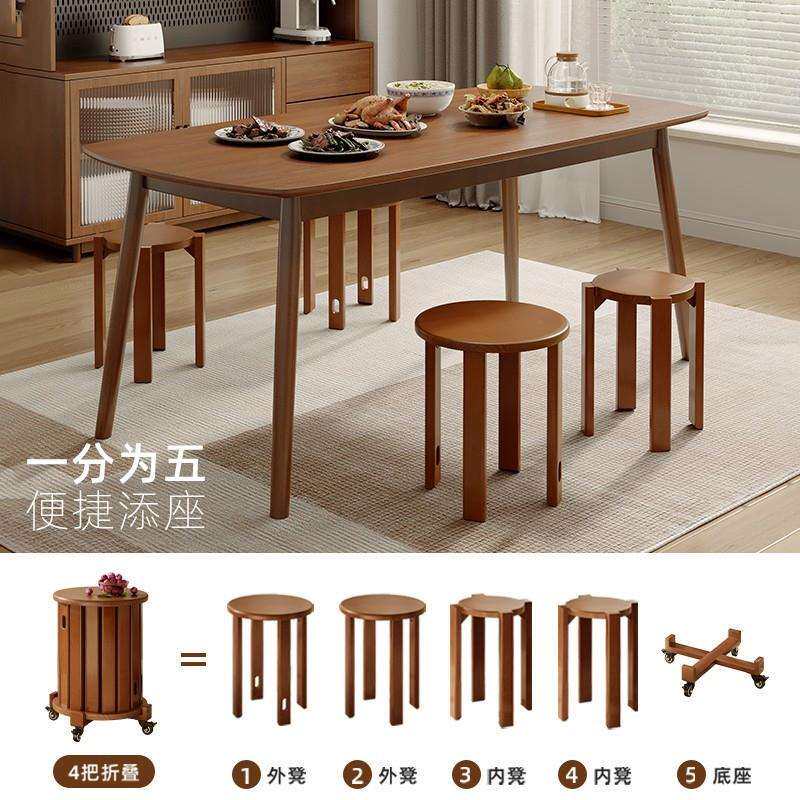 实木堆叠凳客餐厅家用可叠放凳子待客备用叠叠乐圆凳收纳组合餐凳