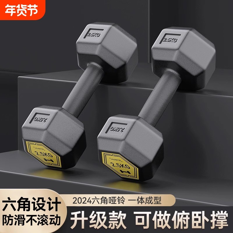 哑铃男士健身家用健身包胶10kg一对学生宿舍女生力量训练六角哑铃
