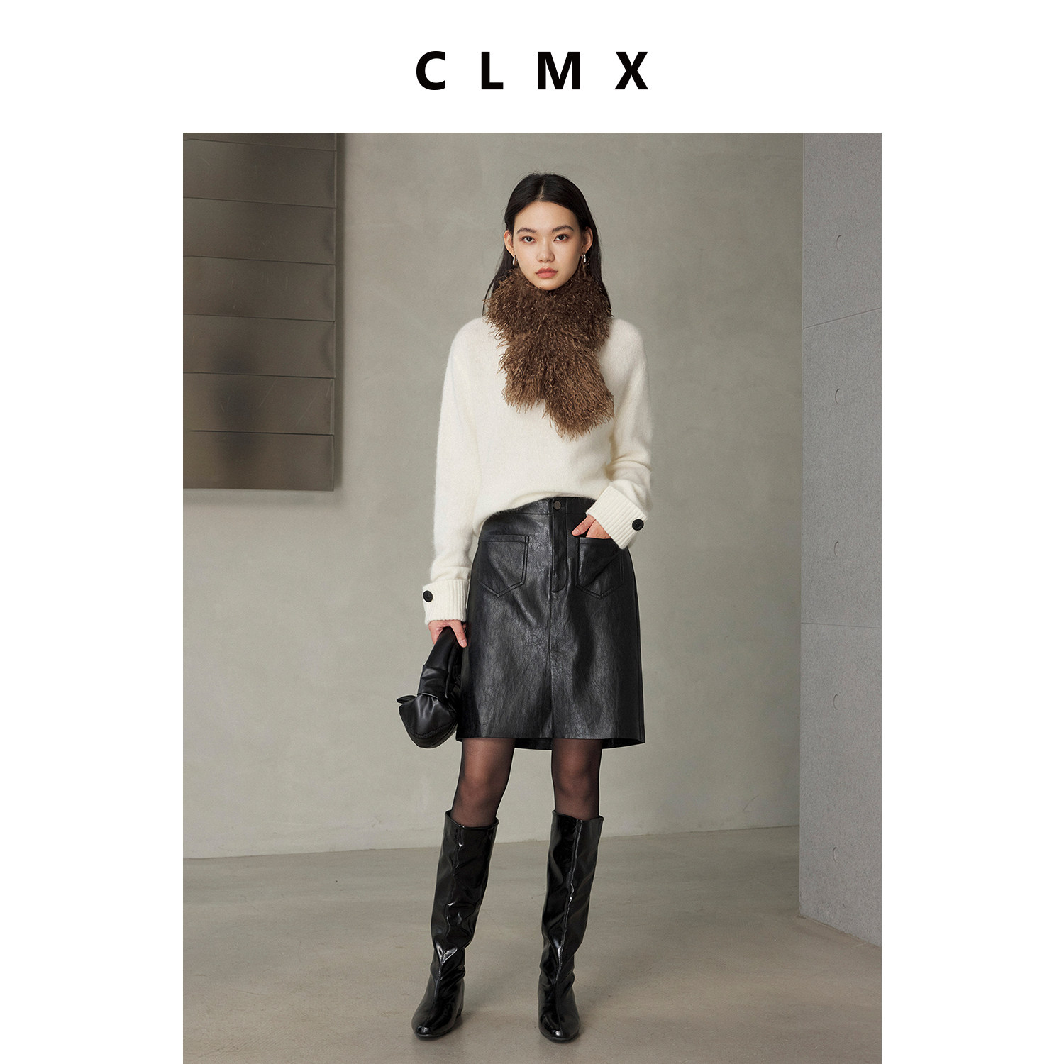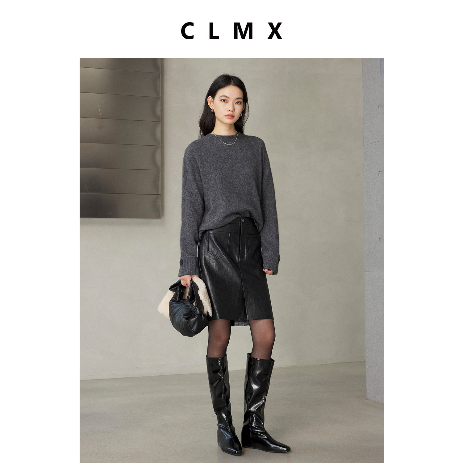 CLMX细腻亲肤26支羊毛兔毛混纺纱线时装感翻折边扣饰袖型圆领毛衣