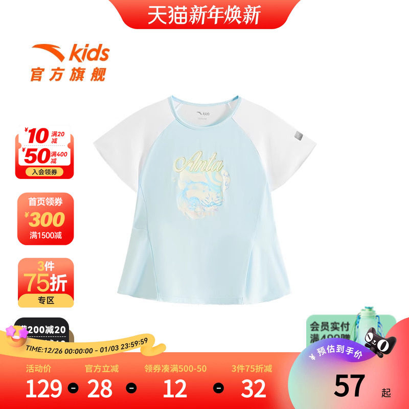 安踏女童短T夏季洋气可爱印花短袖25新款大童运动速干T恤甜美上衣