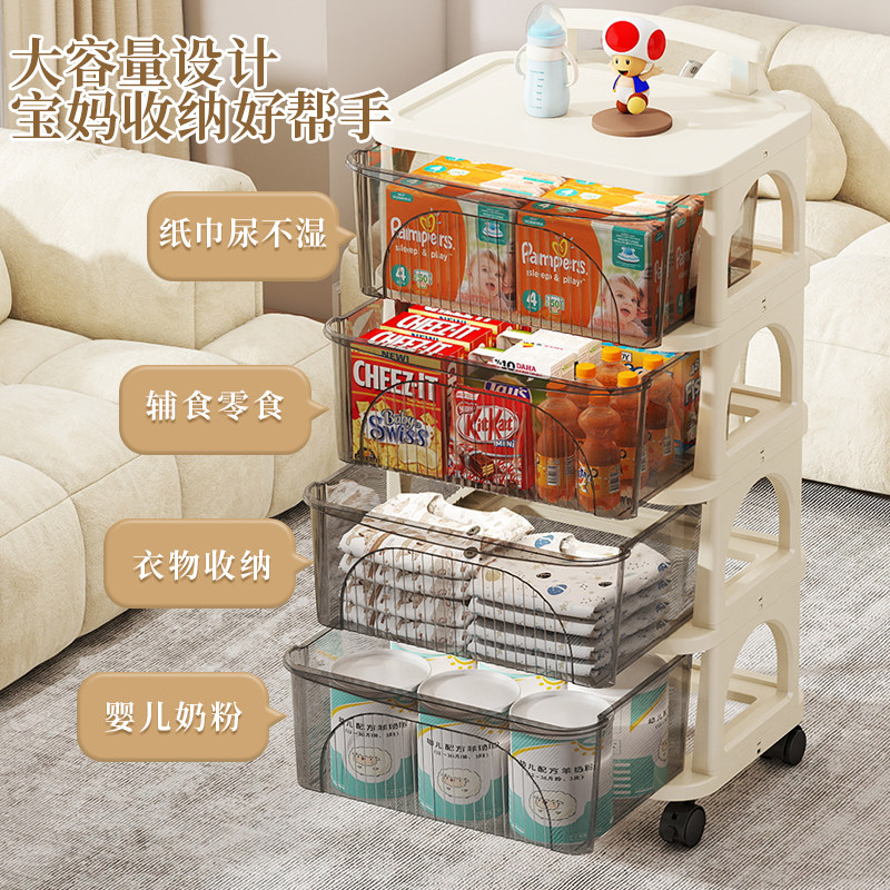 小推车置物架多层抽屉式婴儿玩具零食收纳架子客厅收纳柜移动浴室