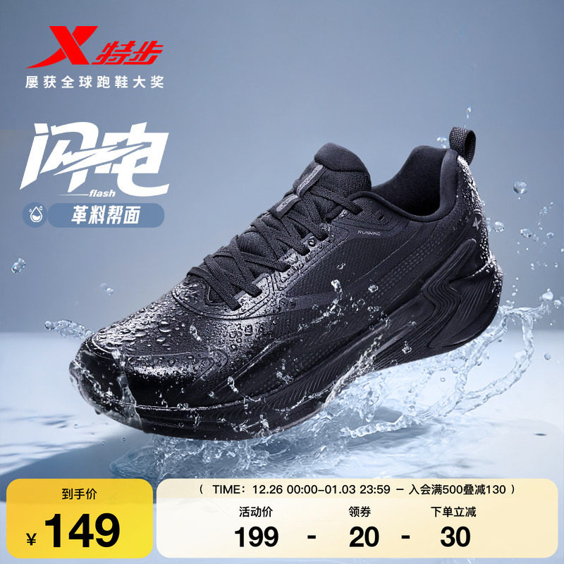 特步跑步鞋男鞋冬季新款黑色运动鞋皮面防泼水爸爸减震网面休闲鞋