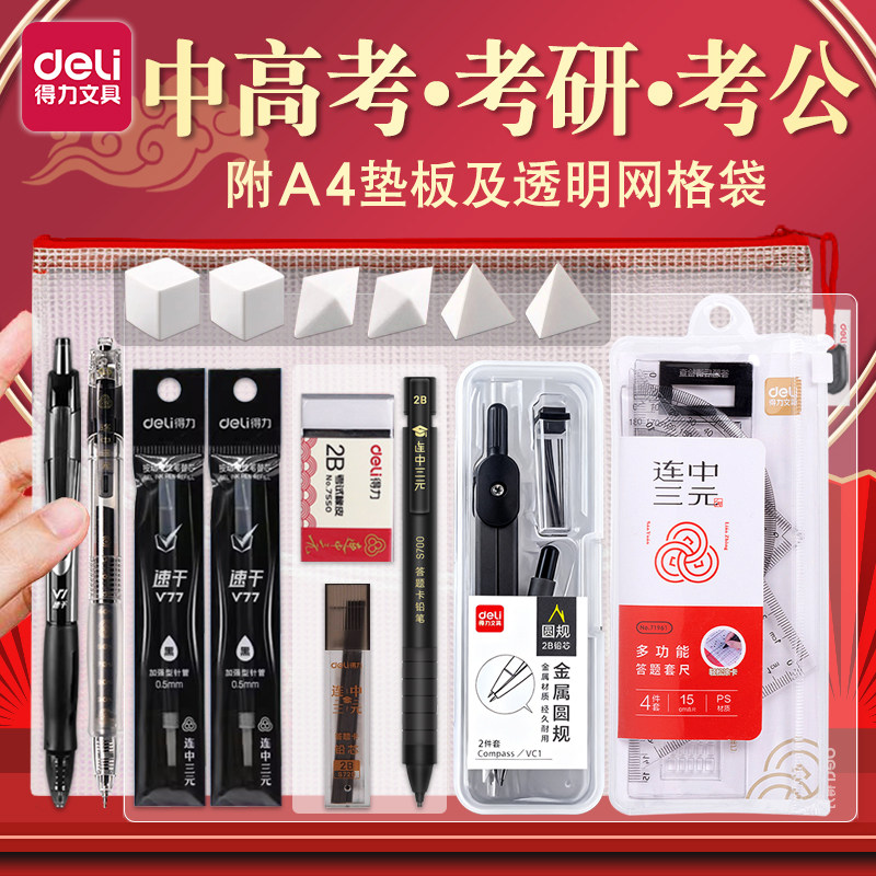 得力考试专用文具套装中考高考考研文具套装公务员国考初中生涂卡笔答题卡必备学习工具用品小学生笔芯中学生