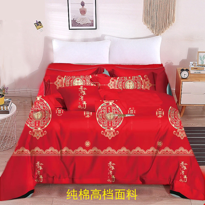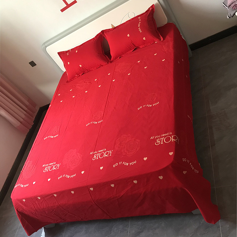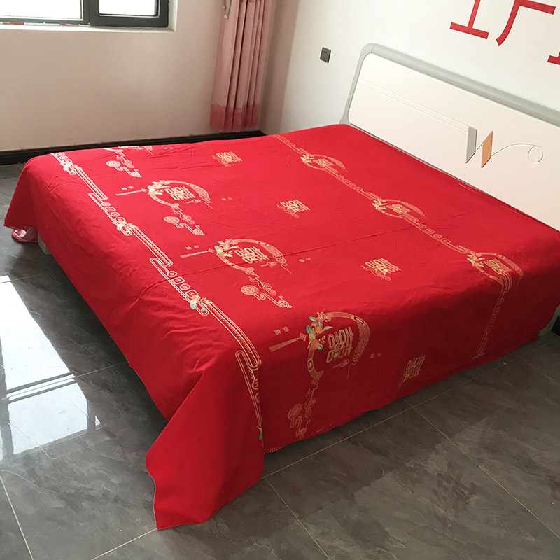 全棉大红加厚床单件100%纯棉结婚庆被单双人喜事加大炕单新婚2m床