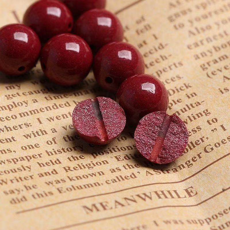 天然原矿朱砂散珠圆珠手链手串文玩配珠批发