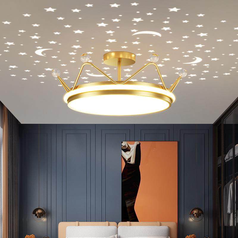 皇冠卧室灯吸顶灯具现代简约家用儿童房间灯智能温馨书房投影灯饰