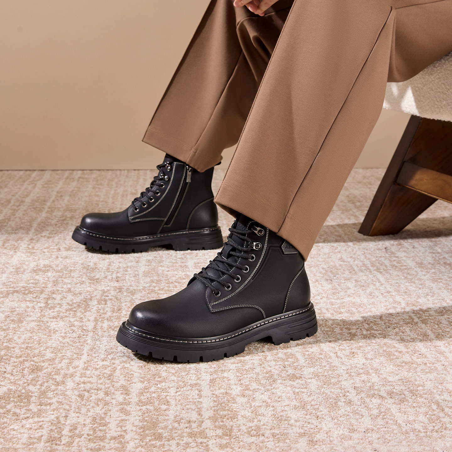 奥康 2025冬季新款男鞋马丁靴加绒保暖防滑耐磨户外高帮工装靴子