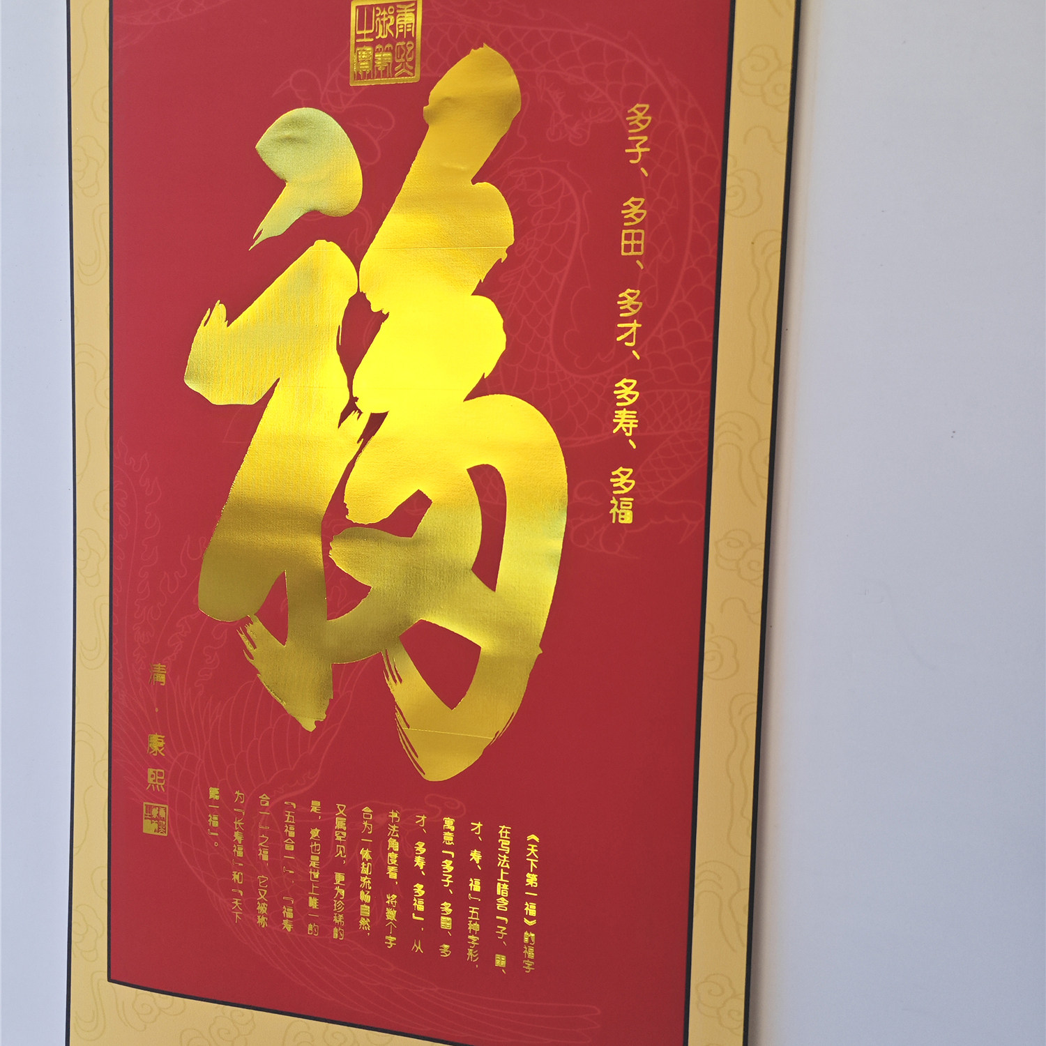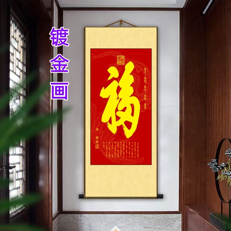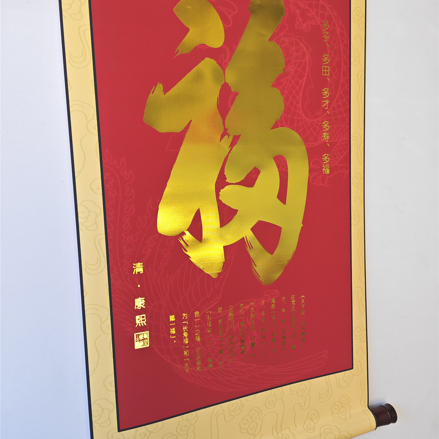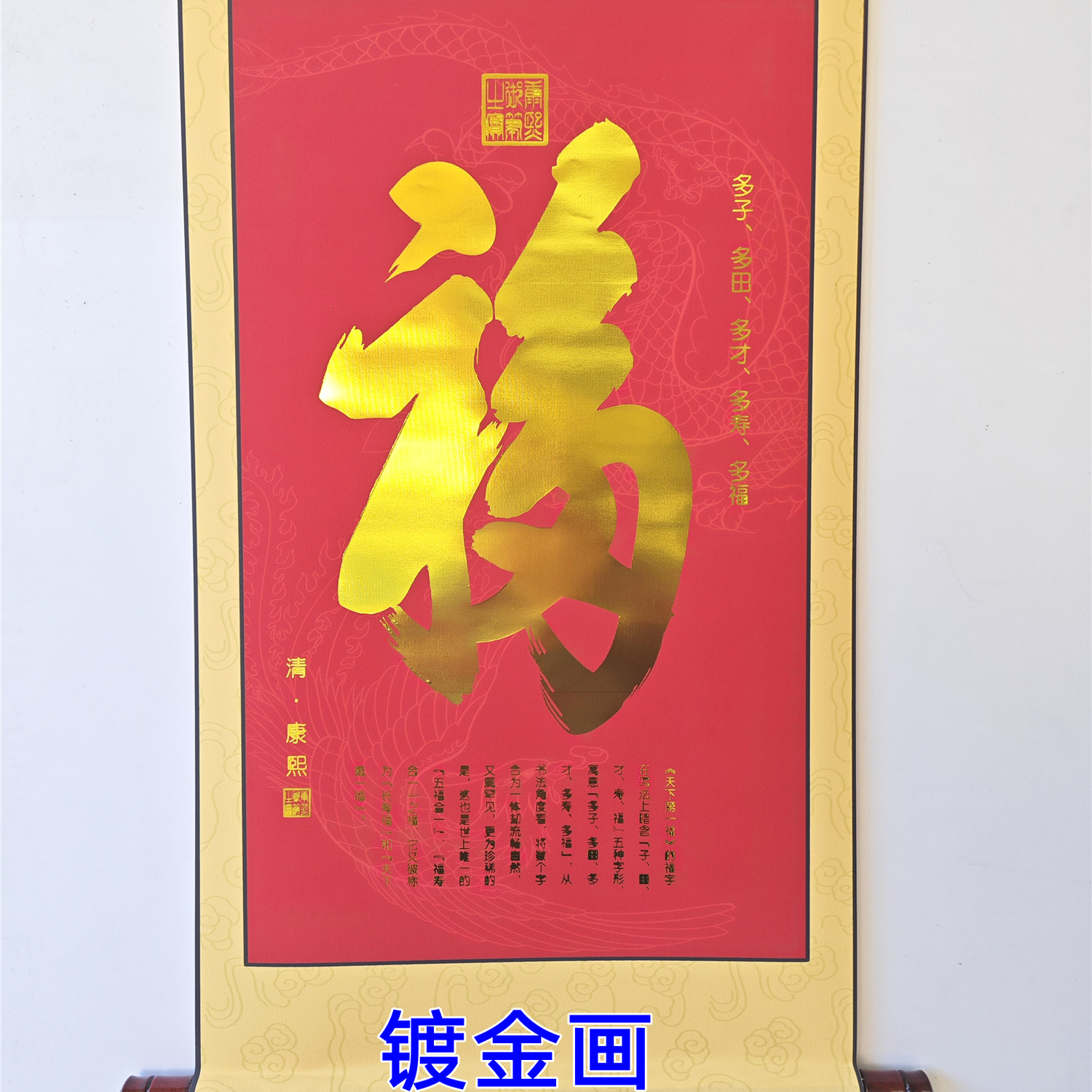 康熙御笔福字中国风办公室客厅丝绢卷轴玄关春节年画镀金画新中式