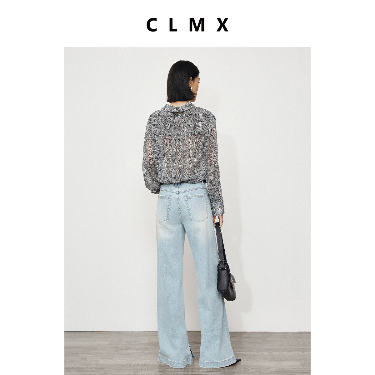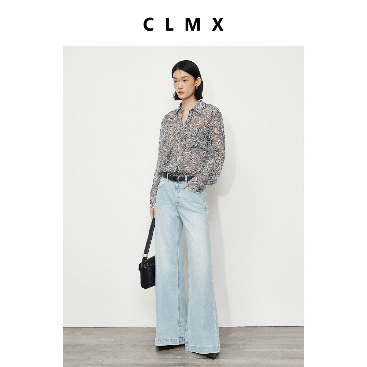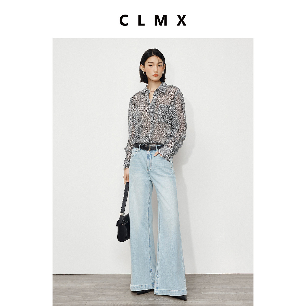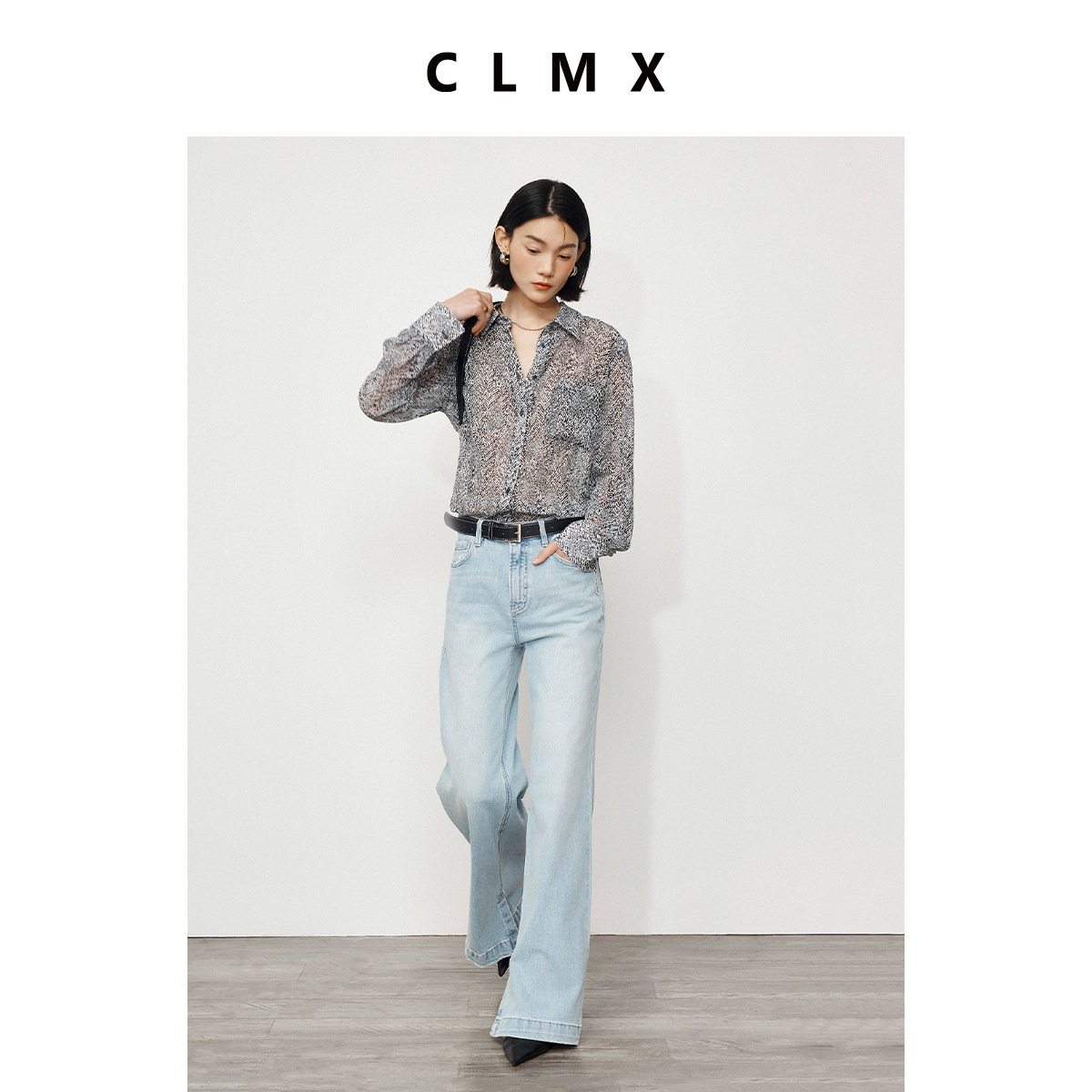 CLMX轻透感50D雪纺皱黑白艺术印花面料 复古时髦黑白纹印花衬衫