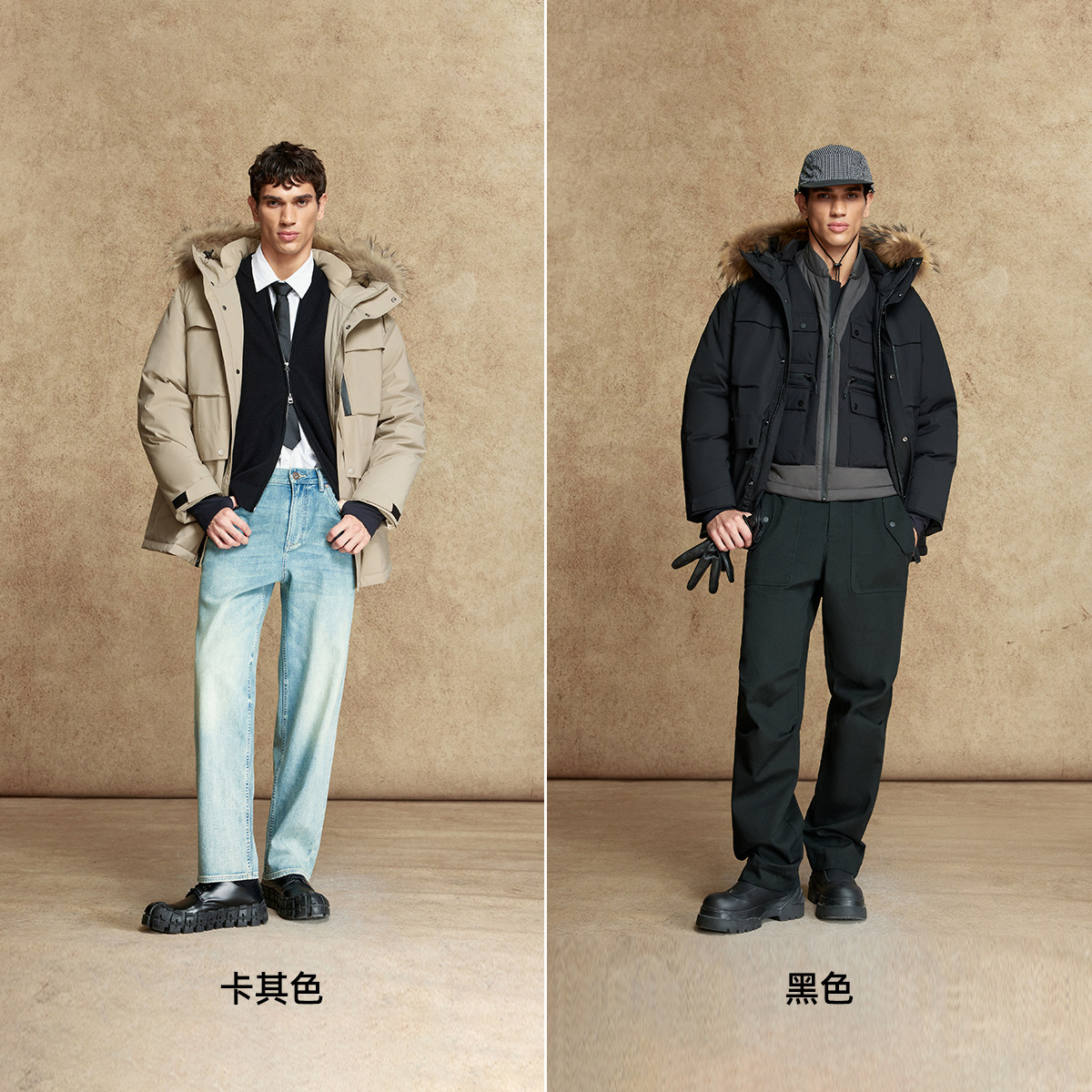 骆驼黑钻5男装羽绒服秋冬加厚保暖鸭绒外套防水防风面包服户外男