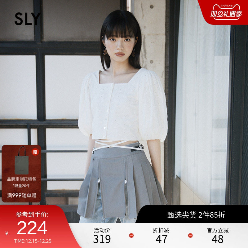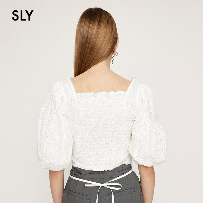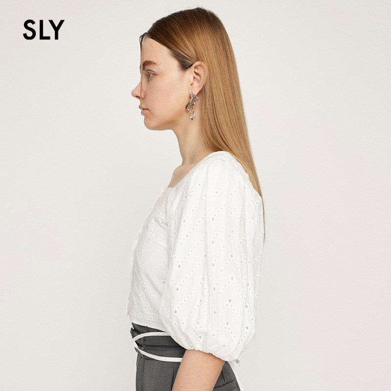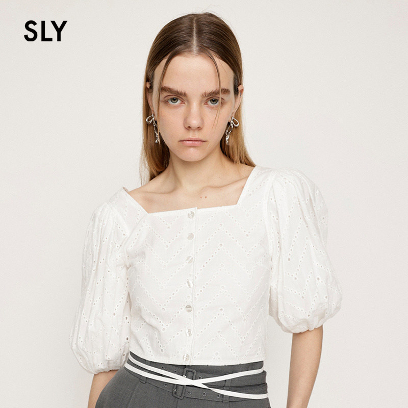 SLY 春季法式优雅芭蕾风泡泡袖系带衬衫女030HSY30-0721
