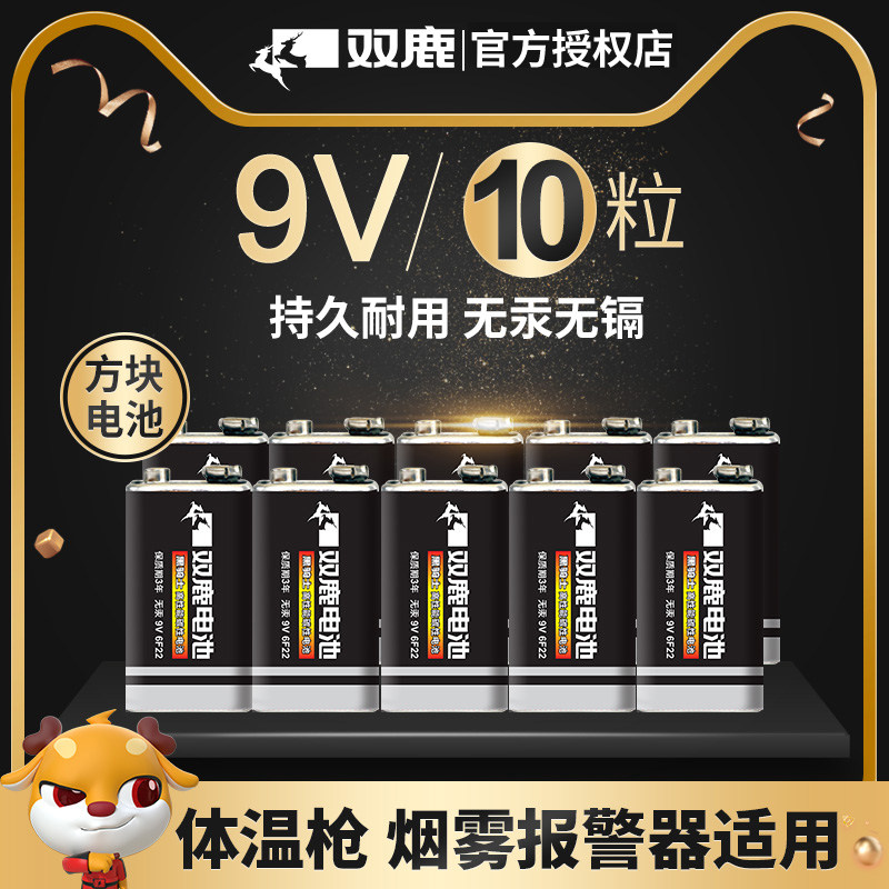 双鹿9v电池6f22碳性玩具遥控器方形九伏9伏万用表无线话筒麦克风方电池006P不可充电层叠烟雾报警器1604G电池