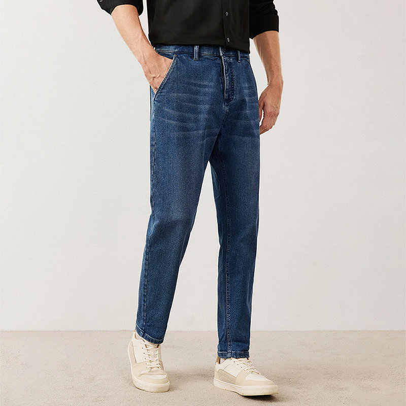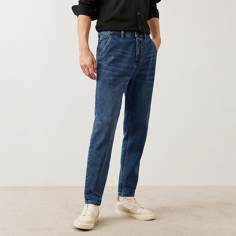 森柔牛仔|森马牛仔裤男款磨毛小脚裤子通勤基础百搭冬季长裤弹力