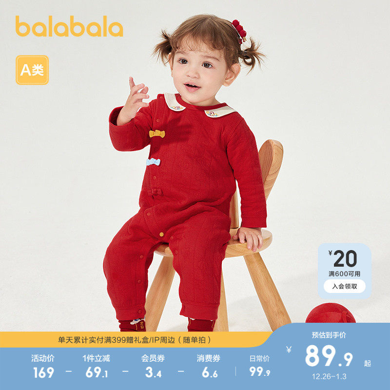 巴拉巴拉童装婴儿连体衣新生儿爬服2025年新款春秋装宝宝衣服夹棉