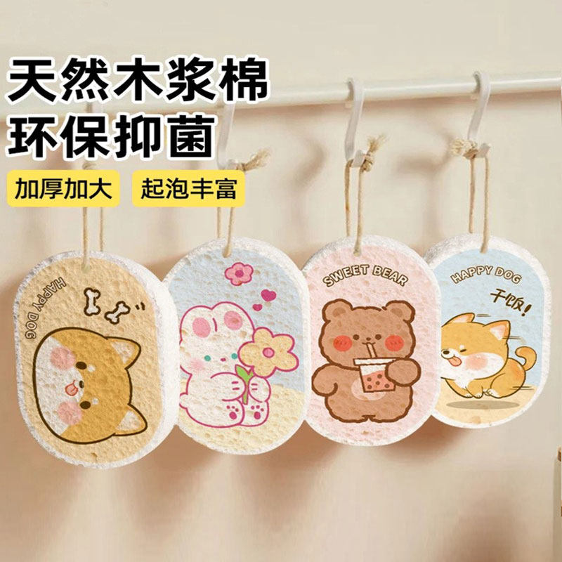 璟珞加大加厚木浆海绵擦家用厨房天然吸水洗碗棉压缩海绵刷锅神器