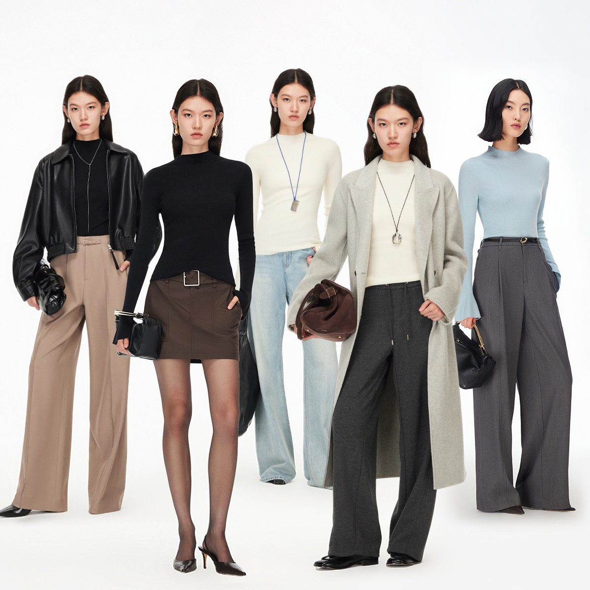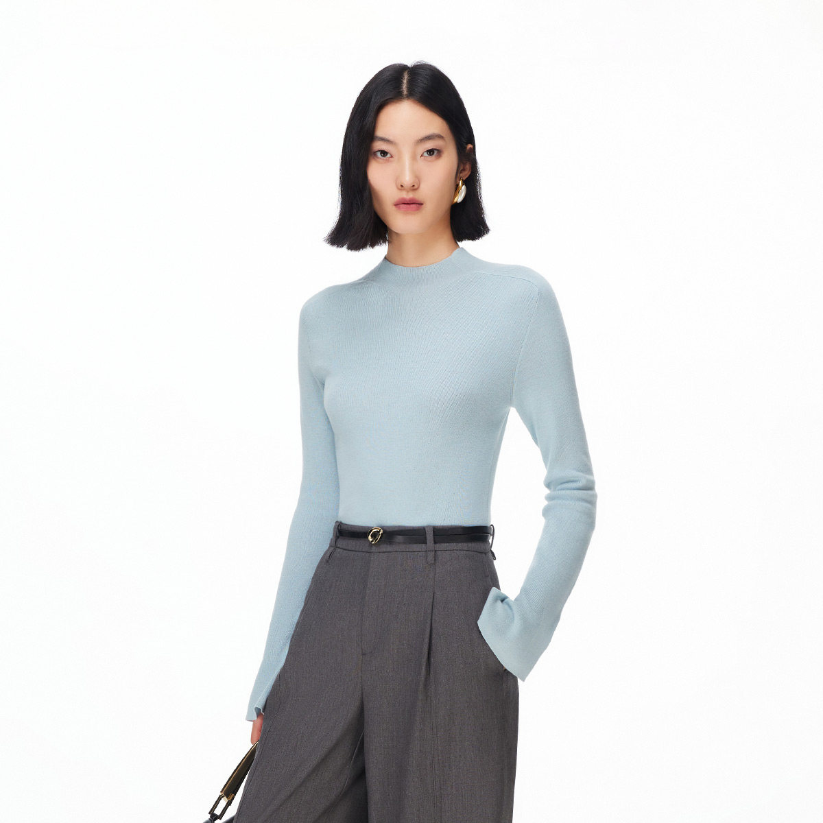 修身收腰;半高领;微喇袖口;简约设计