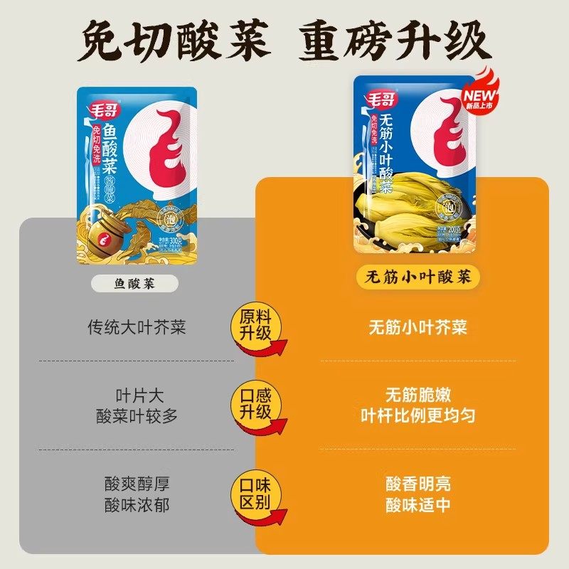 重庆毛哥免切免清洗鱼酸菜300g四川泡菜家用小包泡酸菜酸菜鱼调料