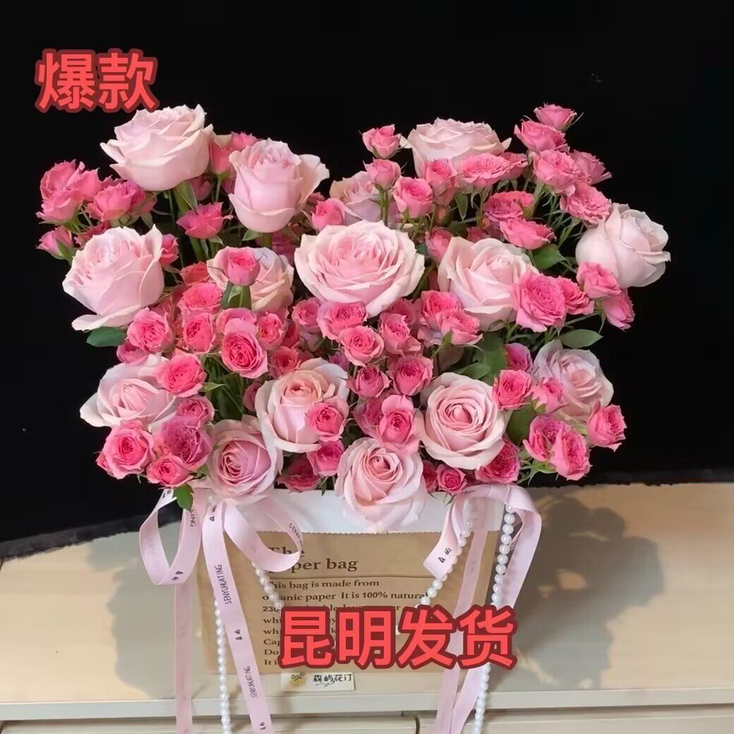 粉红雪山苏菲泡泡多头玫瑰鲜花云南昆明基地发七夕情人节家庭插花